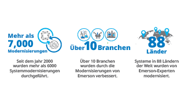 Emerson verfügt über umfangreiche Erfahrung in der Modernisierung von Steuerungssystemen und hat bereits über 7,000 Migrationen aller Arten von Altsystemen auf DeltaV-Lösungen unterstützt. Bewährte Prozesse und Mitarbeiter sowie Tools für künstliche Intelligenz und maschinelles Lernen stehen zur Verfügung, um den Stand Ihrer Automatisierung zu bewerten, betriebliche Vorteile zu quantifizieren und dann Ihr Projekt zu planen und durchzuführen. Mit über 5000 Projektressourcen weltweit kann die Modernisierung Ihres Steuerungssystems einwandfrei, termingerecht und mit minimalen Auswirkungen auf die Produktion umgesetzt werden.