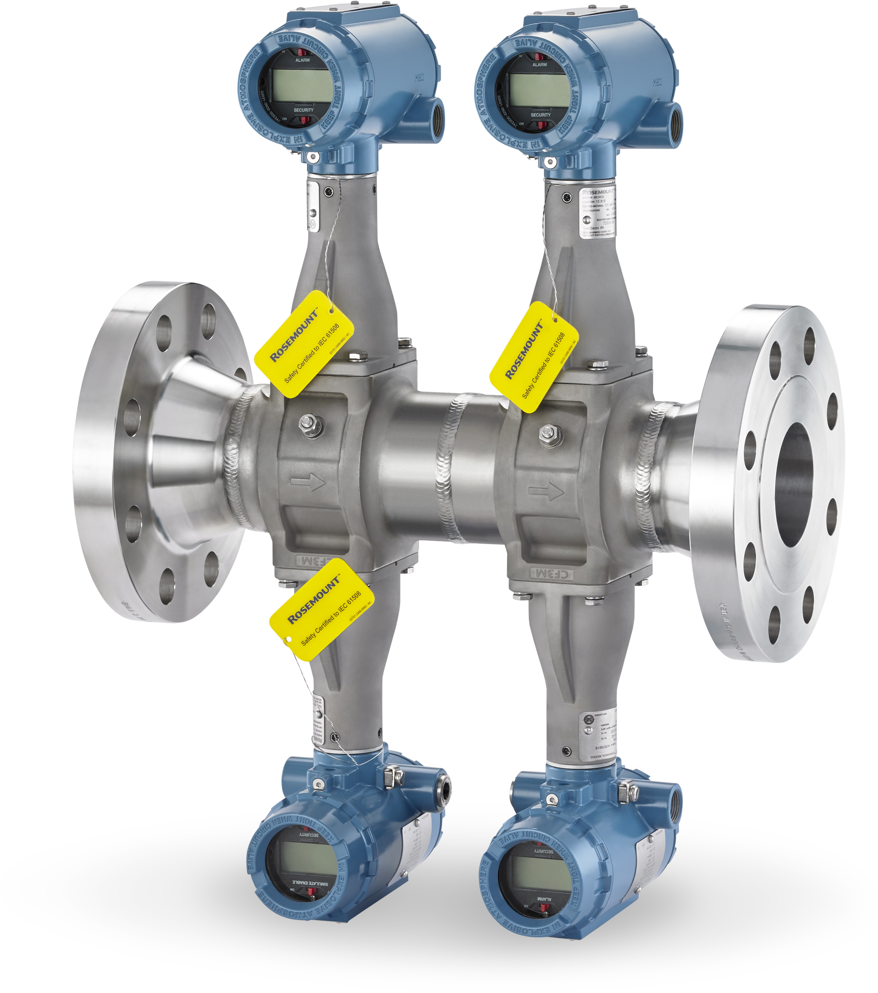 Neues Rosemount 8800 Quad Vortex-Durchflussmessgerät mit integrierter Redundanz zur Erfüllung von SIL3-Sicherheitsanforderungen und grundlegenden Prozesssteuerungsfunktionen erfordert nur die Hälfte des Platzbedarfs von vier herkömmlichen redundanten Durchflussmessgeräten und bietet einfache, kosteneffektive Installation