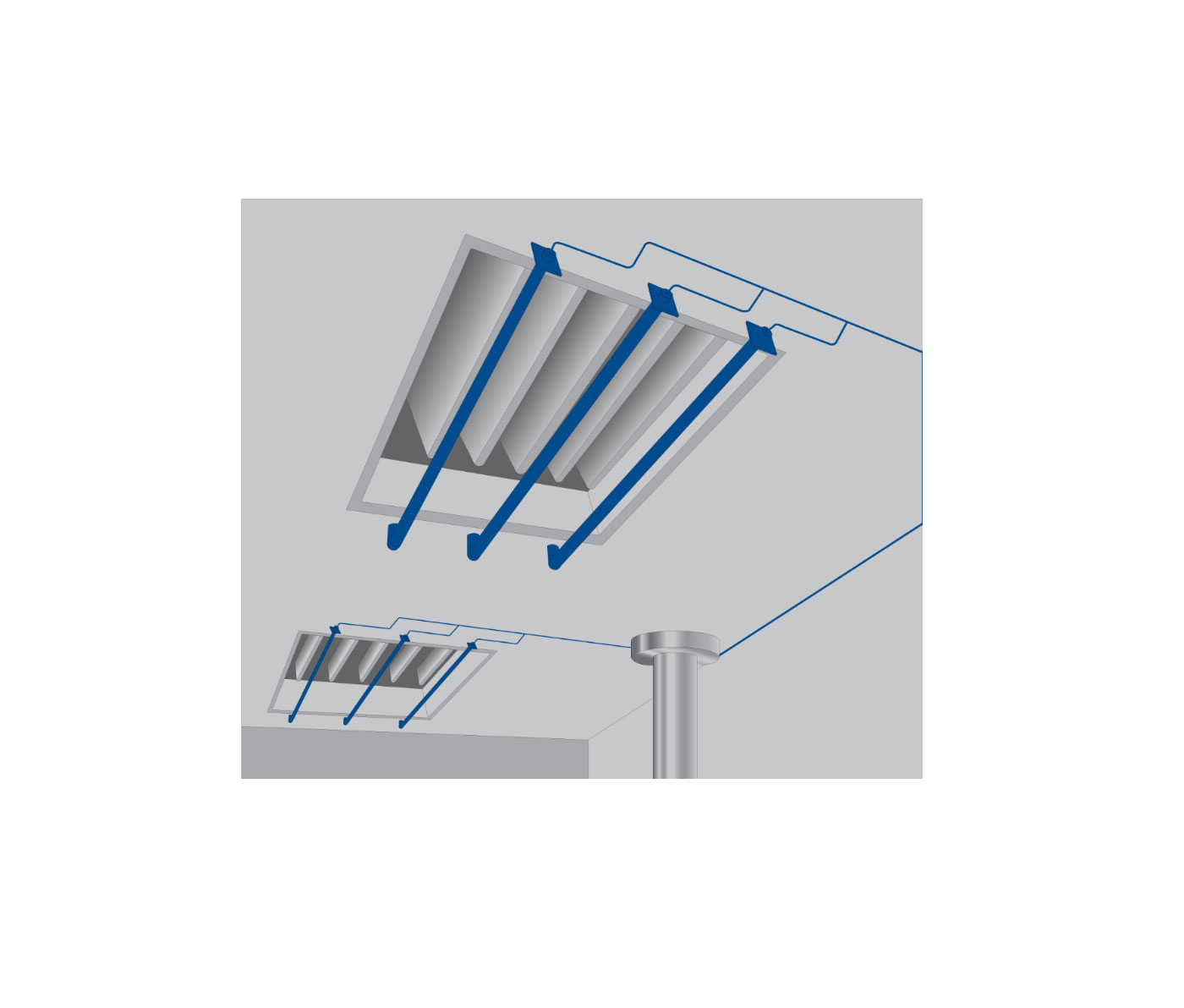 Rauch- und Gasabsaugsysteme werden außerhalb des Probenahmebereichs platziert, da die Temperatur- und Feuchtigkeitsbedingungen im Kanal die Genauigkeit beeinträchtigen könnten. Selbstkompensierende Kanalsonden können auch innerhalb der Luftprobenahmebereiche eingesetzt werden, z. B. im Kanal, im Lufteinlass oder in der Abluftöffnung. Ein Absaugsystem ist anderen Probenahmesystemen insofern überlegen, als es der gesamten Breite des Kanals Proben entnimmt und so sicherstellt, dass alle Komponenten erfasst werden. Diese Proben werden gemischt, um die tatsächliche Verteilung innerhalb des Kanals im passenden Verhältnis wiederzugeben.