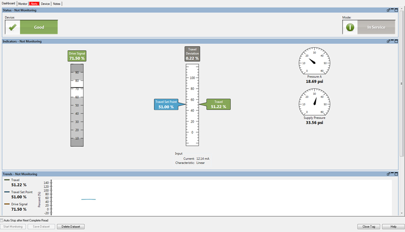 Diagnose während des Betriebs kann Probleme mit der Qualität der Instrumentenluft, durch Leckagen und eingeschränkten Versorgungsdruck erkennen und Schwierigkeiten mit dem Stellventil, etwa übermäßige Reibung, Totzonen und ein Überschreiten der kalibrierten Werte identifizieren.