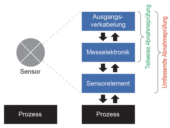 Eine umfassende wiederkehrende Geräteprüfung verifiziert alle drei Funktionselemente eines Geräts – Ausgangsschaltung, Messelektronik und Sensorelement. Eine partielle wiederkehrende Geräteprüfung verifiziert ein oder zwei davon. Eine partielle wiederkehrende Geräteprüfung wird durchgeführt, um sicherzustellen, dass ein Gerät keine internen Probleme hat. Sie bringt die PFD eines Geräts wieder auf einen Prozentsatz des ursprünglichen Niveaus und stellt sicher, dass es die spezifizierte SIL-Anforderung erfüllt.