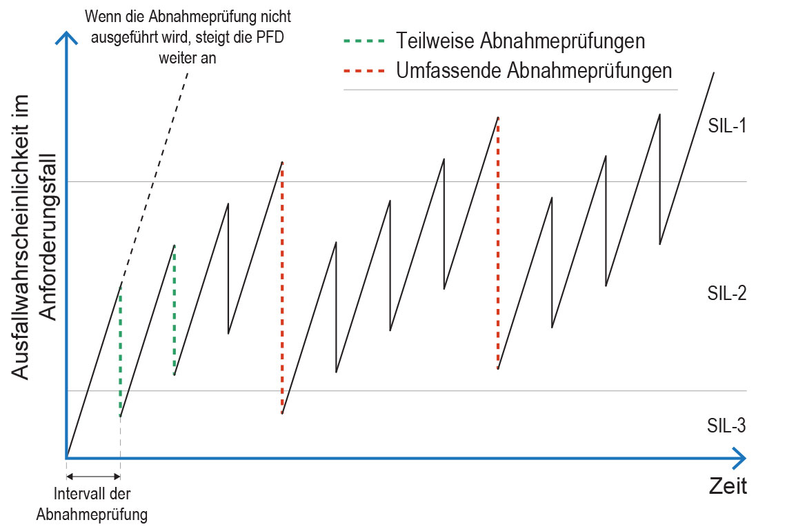 Wiederkehrende Geräteprüfungen werden durchgeführt, um die Funktionalität von Geräten zu überprüfen, die innerhalb eines Sicherheitskreislaufs implementiert sind. Sie sind obligatorisch, um den internationalen Sicherheitsstandards zu entsprechen. Gefährliche unerkannte Ausfälle (Dangerous Undetected Failures, DU), d. h. Ausfälle, die durch die Gerätediagnose nicht erkannt werden, müssen beim Entwurf des Sicherheitskreislaufs berücksichtigt werden. Die Regelmäßigkeit von wiederkehrenden Geräteprüfungen basiert auf dem Sicherheitsintegritätsniveau des Sicherheitskreislaufs und der Wahrscheinlichkeit eines Geräteausfalls (Probability of a Device Failure, PFD). Um sicherzustellen, dass ein Gerät weiterhin die erforderliche Sicherheitsintegritätsstufe (Safety Integrity Level, SIL) erreicht, kann die PFD, die mit der Zeit zunimmt, durch umfassende wiederkehrende Geräteprüfungen auf fast das ursprüngliche Niveau reduziert werden. Bei Geräten mit wenigen DU kann dies auch mit partiellen wiederkehrenden Geräteprüfungen erreicht werden. Diese können aus der Ferne durchgeführt werden und sind weit weniger zeitaufwendig als umfassende Prüfungen.
