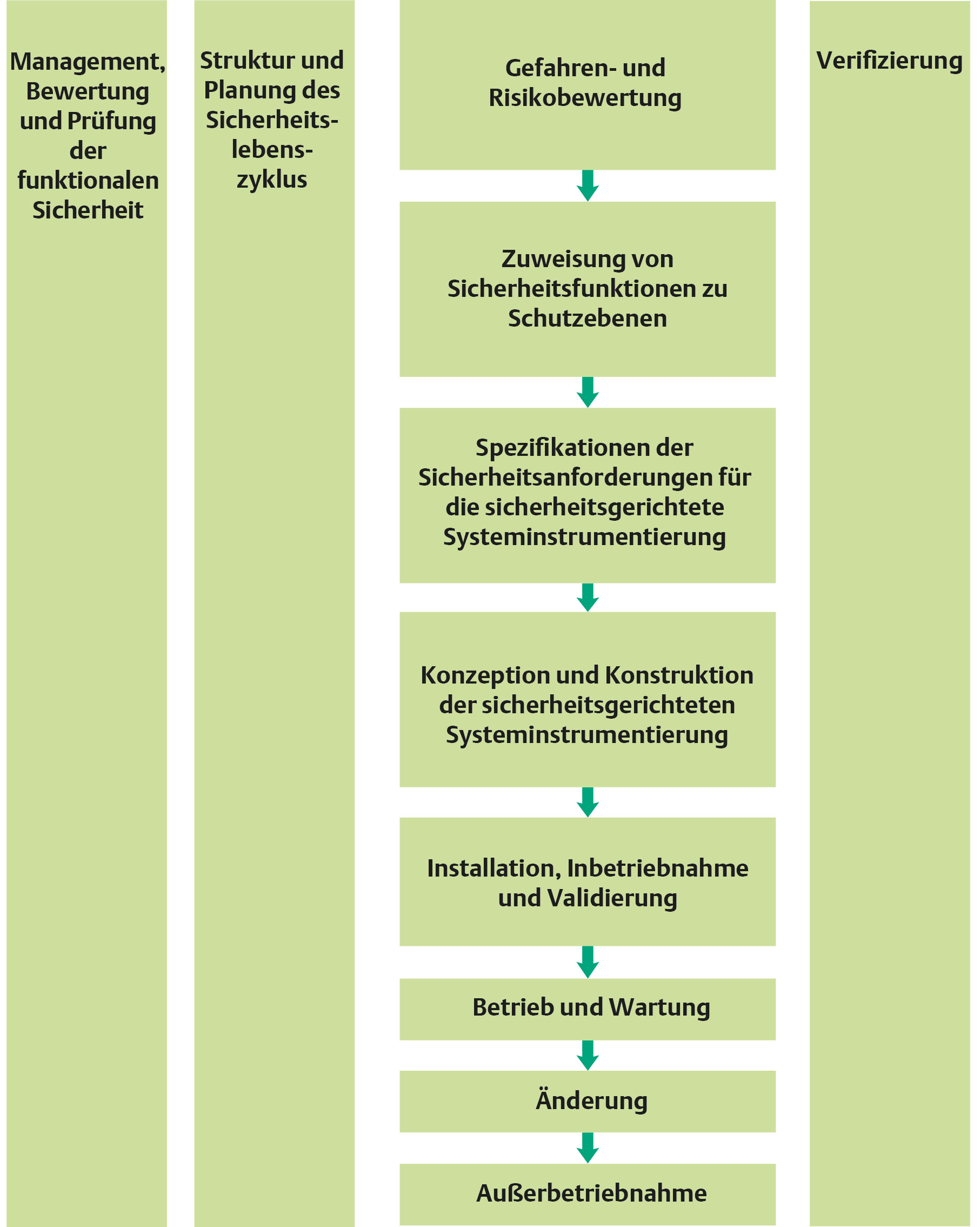 Die Norm IEC 61511 empfiehlt die Verwendung eines funktionalen Sicherheitslebenszyklus, um:
