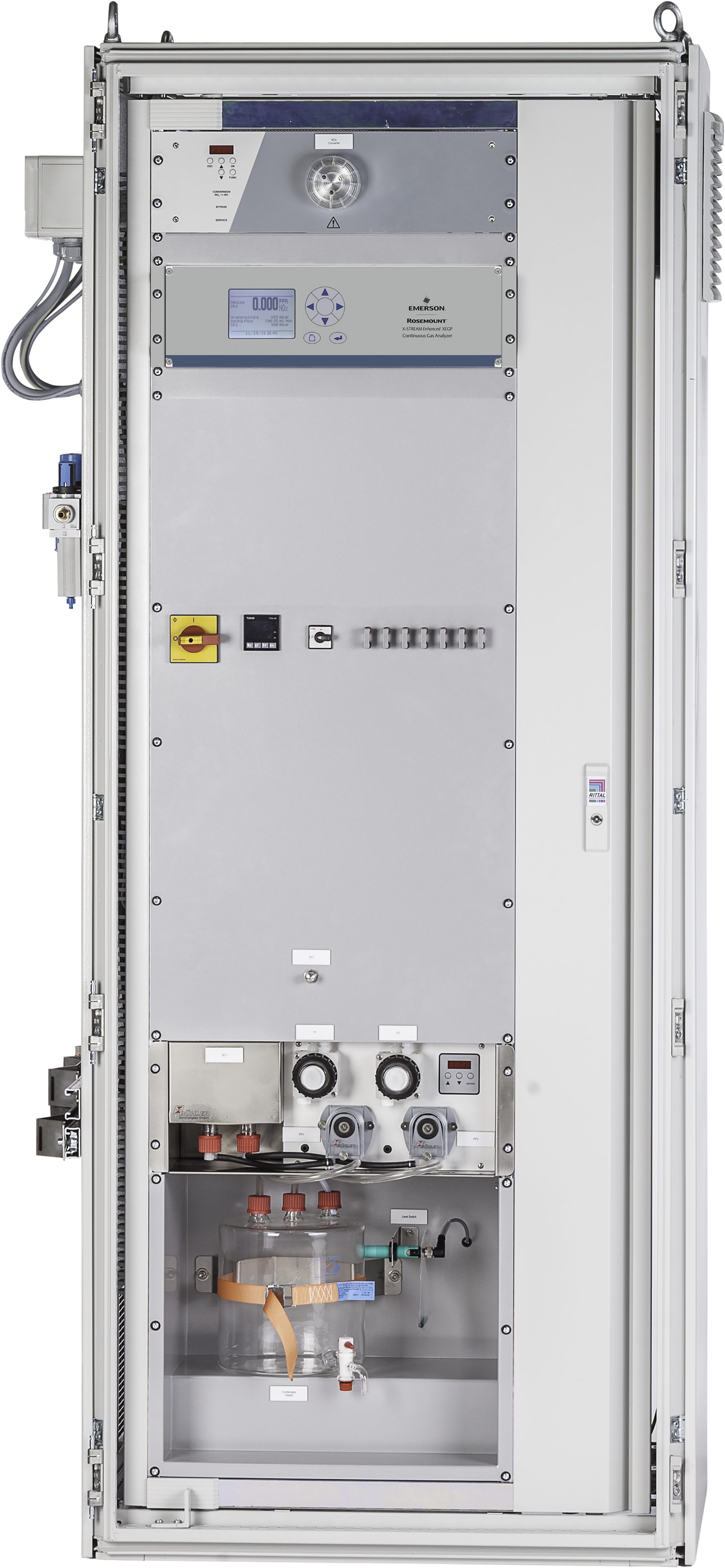 Als ein modulares, integriertes Emissionsüberwachungssystem lässt sich das Rosemount XE10 einfach und schnell konfigurieren und wird komplett mit einem System zur Entnahme und Aufbereitung von Gasproben sowie bis zu drei Gasanalysemodulen geliefert. Jedes Modul kann auf verschiedene Messbereiche für unterschiedliche Gaskomponenten eingestellt werden, zu denen CO, NOx, SO2, CO2 und O2 gehören.