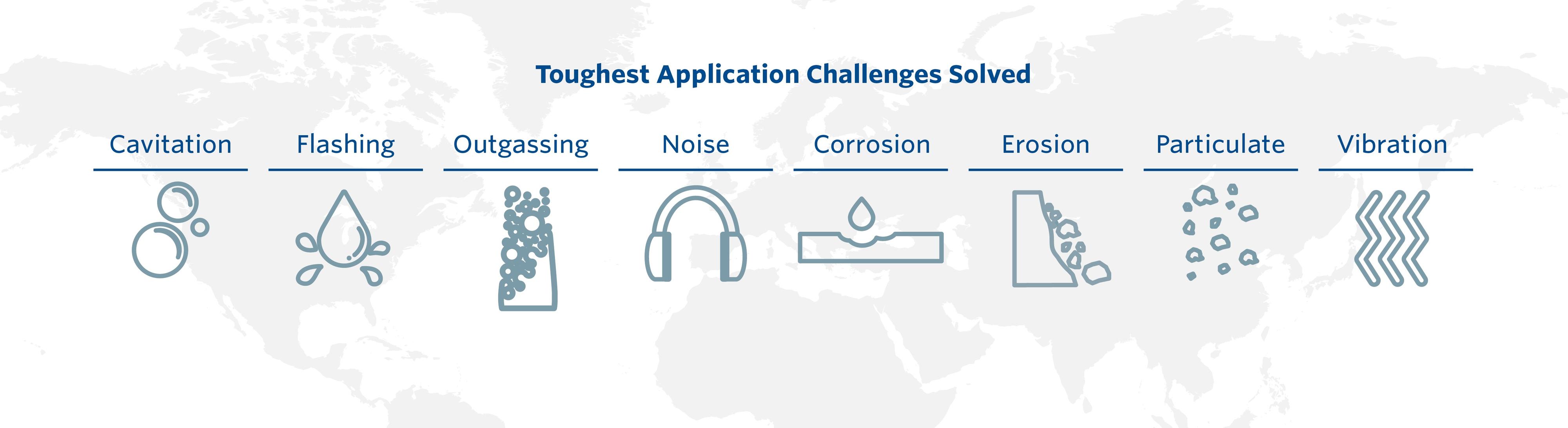 A severe service control valve is used in the most difficult installations within your process plant. These applications commonly include cavitation, flashing, outgassing, erosion, corrosion, high noise, and vibrations, all of which have the potential to cause damage to the valve and/or system if not addressed properly.