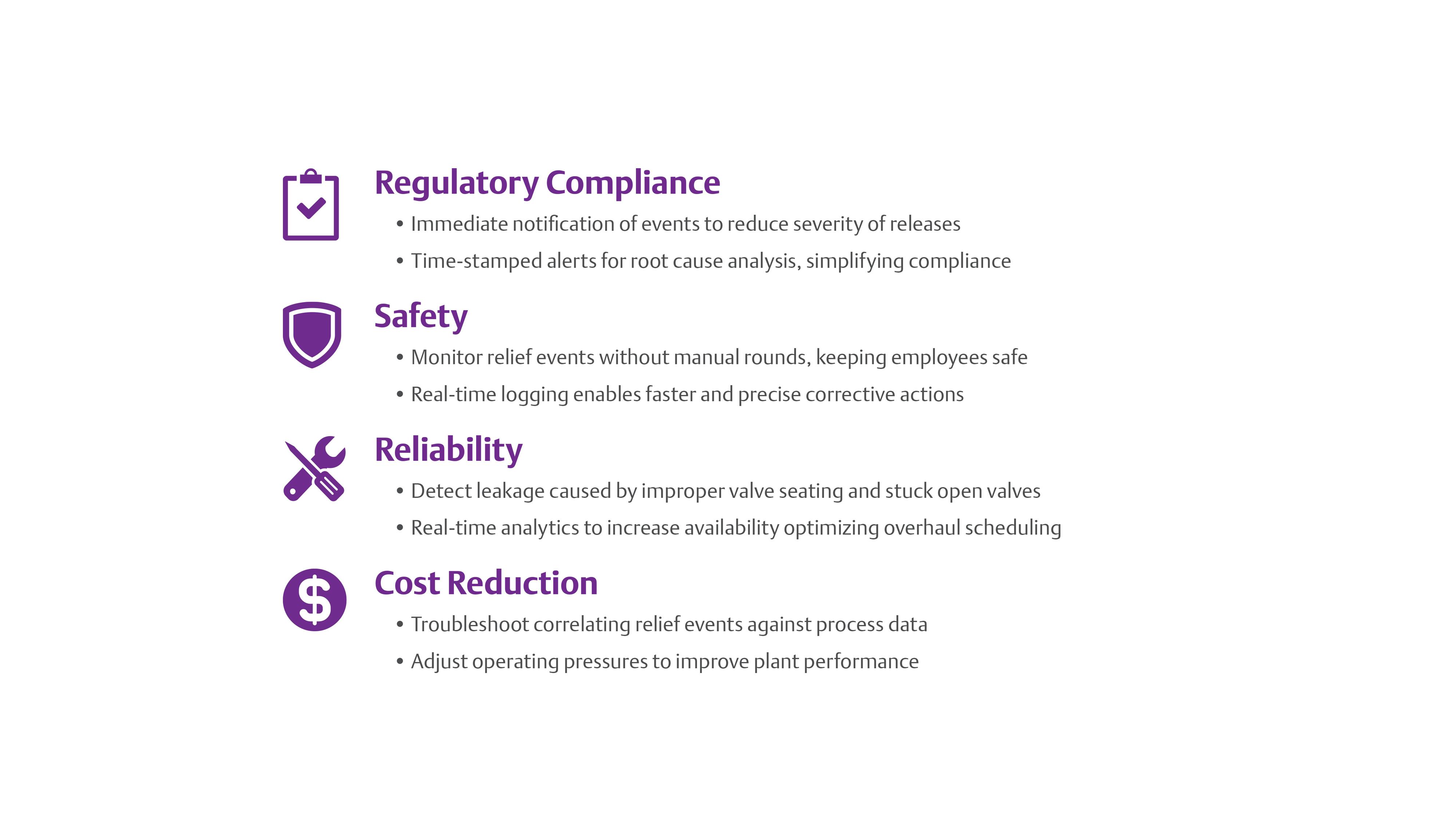 PRVs are mechanical devices and are typically not monitored. Preventive maintenance with service schedules is the norm. Consequently, undetected relief events and leakages may remain unnoticed for years.