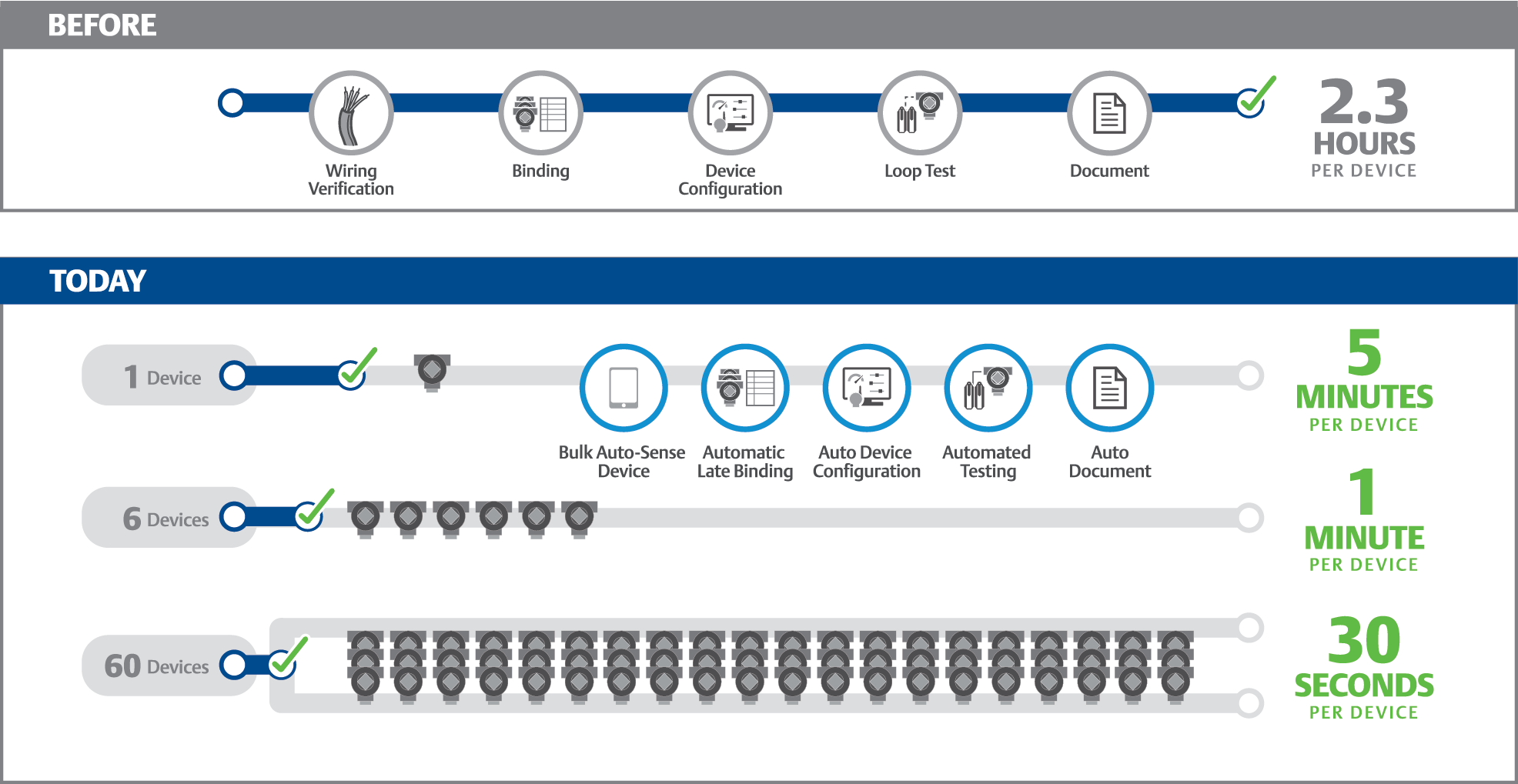 Positively impacting the overall certainty of project execution, Smart Commissioning helps automation projects meet strict and shifting deadlines. New functionality in the DeltaV™ distributed control system (DCS) and AMS Device Manager asset management software improves device binding configuration, testing, and documentation.