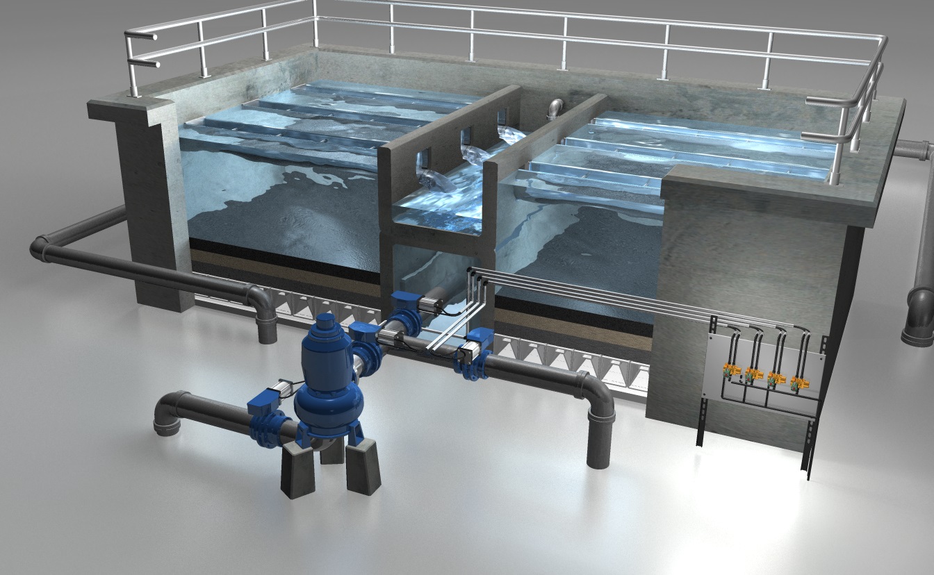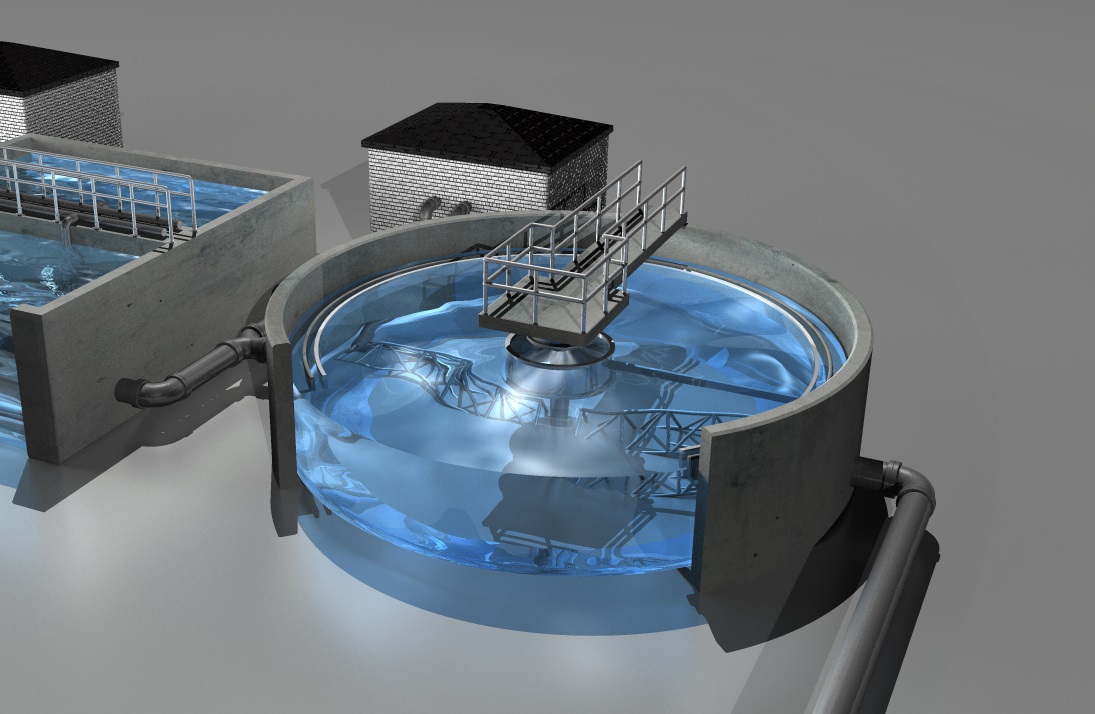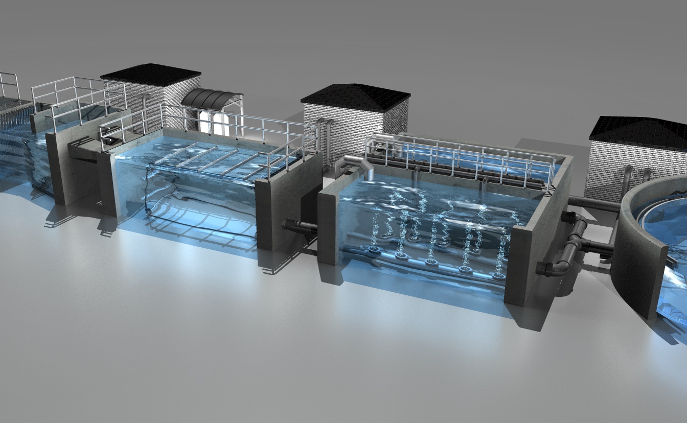 El tratamiento de agua empieza en la fase de tamizado. Toda el agua que ingresa al sistema de tratamiento pasa a través del tanque de tamizado primario. La materia y desechos no microscópicos se eliminan a medida que fluye el agua a través de una serie de filtros.