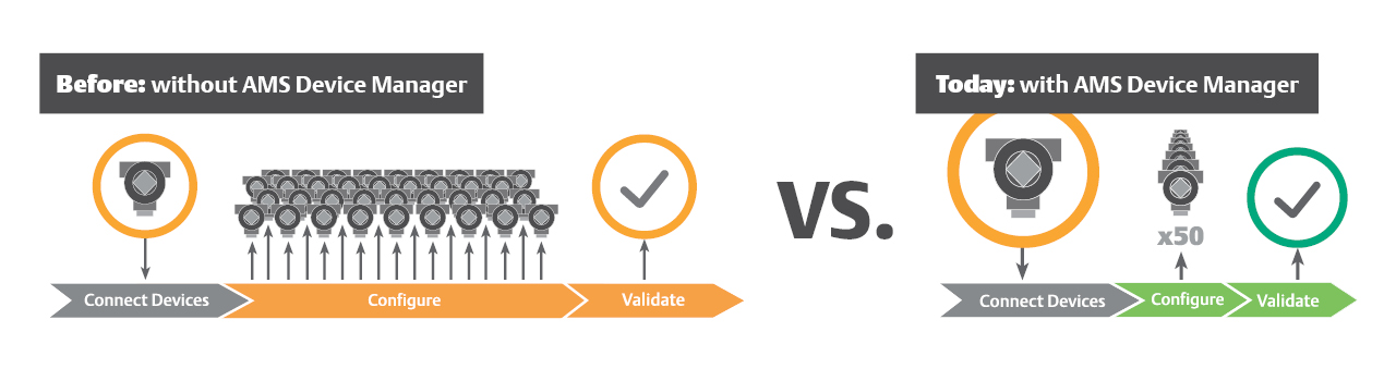El AMS Device Manager permite la transformación digital al proporcionarle una aplicación que adopta estándares y protocolos abiertos que permiten la conectividad a un amplio rango de dispositivos. También permite que el mantenimiento predictivo reduzca las paradas imprevistas, aumente la productividad, mejore la seguridad y aumente el ROI.