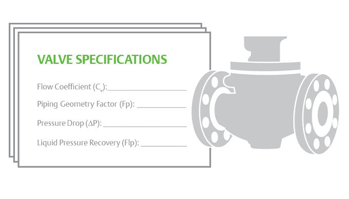 Para estos cálculos, se usará un valor estimado de C V y el F L correspondiente. F P es un factor de corrección que tiene en cuenta las caídas de presión debido a accesorios de la tubería (como reductores, tubos acodados o en T) que podrían estar conectados directamente a las conexiones de entrada y salida de la válvula de control que será dimensionada. Si esos acoplamientos están conectados a la válvula, se los debe tener en cuenta. El procedimiento de dimensionamiento estándar proporciona un método para calcular el factor F P para reductores y expansores concéntricos. Sin embargo, si no hay accesorios conectados a la válvula, F P tiene un valor de 1.0 y se desprende de la ecuación de dimensionamiento. Además, F LP = F L.