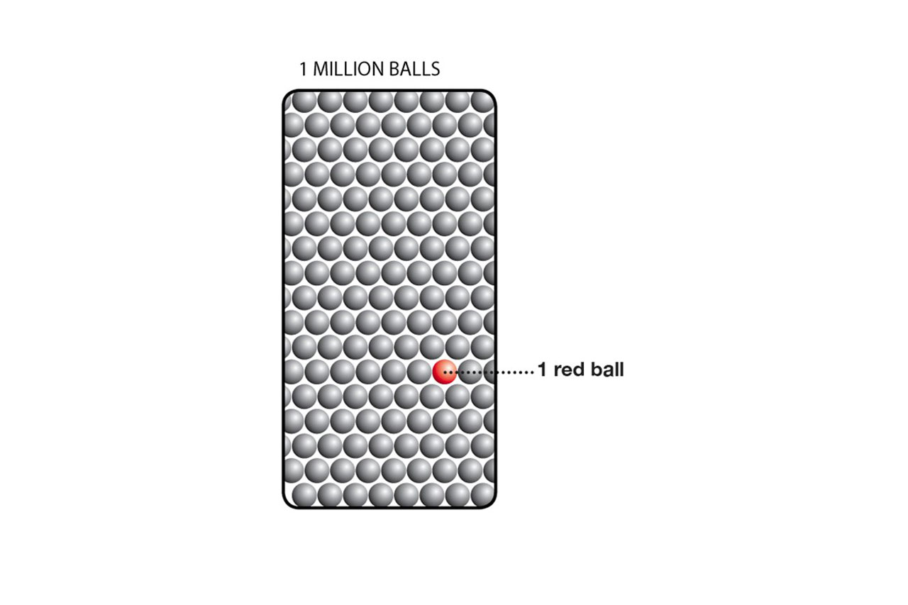 • Por ejemplo, 1 ppm sería equivalente al espacio llenado por un total de 1 millón de bolas de las cuales 1 es roja. La bola roja representa 1 ppm.