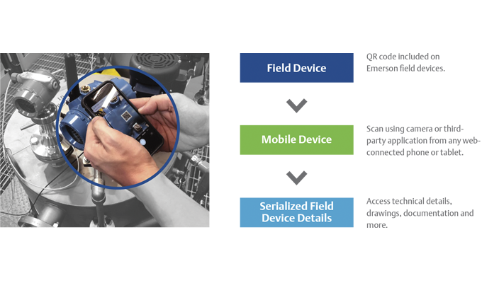 Con tan solo escanear un código QR, los administradores y técnicos de mantenimiento obtienen identificación precisa y al instante de los dispositivos de campo y acceso a la documentación técnica desde un dispositivo móvil en el campo.