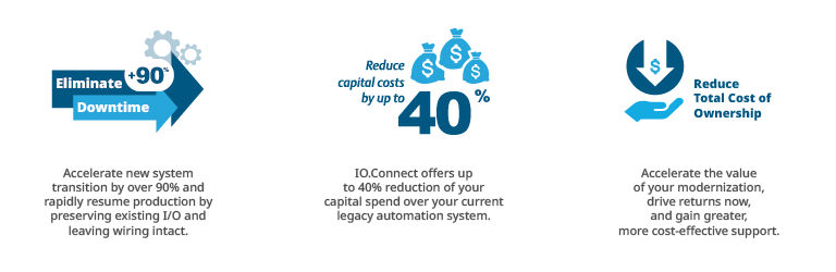 DeltaV™ IO.Connect ayuda a las plantas a actualizar de forma segura y sencilla su sistema de control obsoleto al DCS de DeltaV, mientras minimiza el tiempo de inactividad y los riesgos. Ahora, las plantas poseen las herramientas para usar de forma flexible el capital con el objetivo de reducir los costos operativos, impulsar un ROI inmediato, lograr la transformación digital y prepararse con confianza para el futuro.