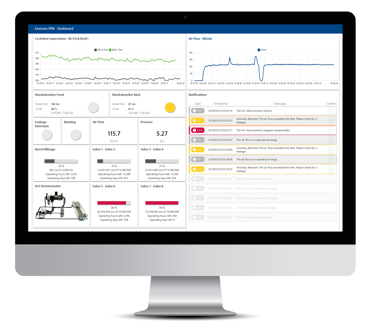 Emerson fournit des outils de surveillance et de maintenance qui testent les pertes de charge et les pics de pression en temps réel, ainsi que l’efficacité des manomètres sur le long terme, optimisant ainsi la consommation et la productivité. Qu’il s’agisse de surveiller un seul appareil ou une usine entière, les solutions d’Emerson sont flexibles et guidées par les besoins du client.