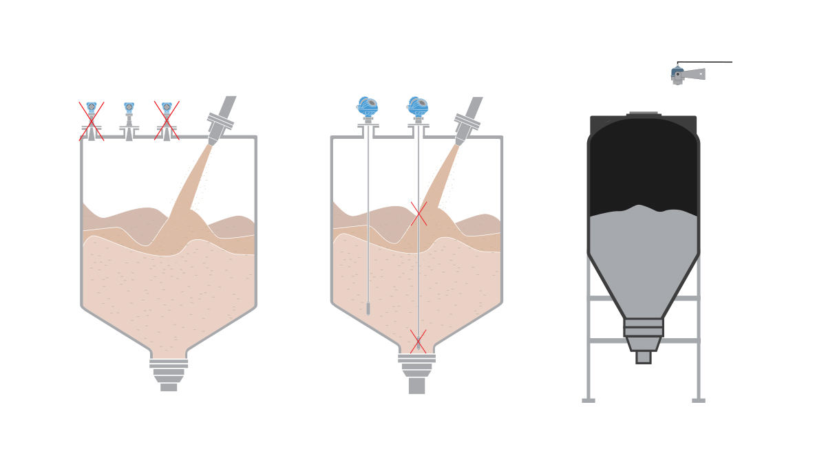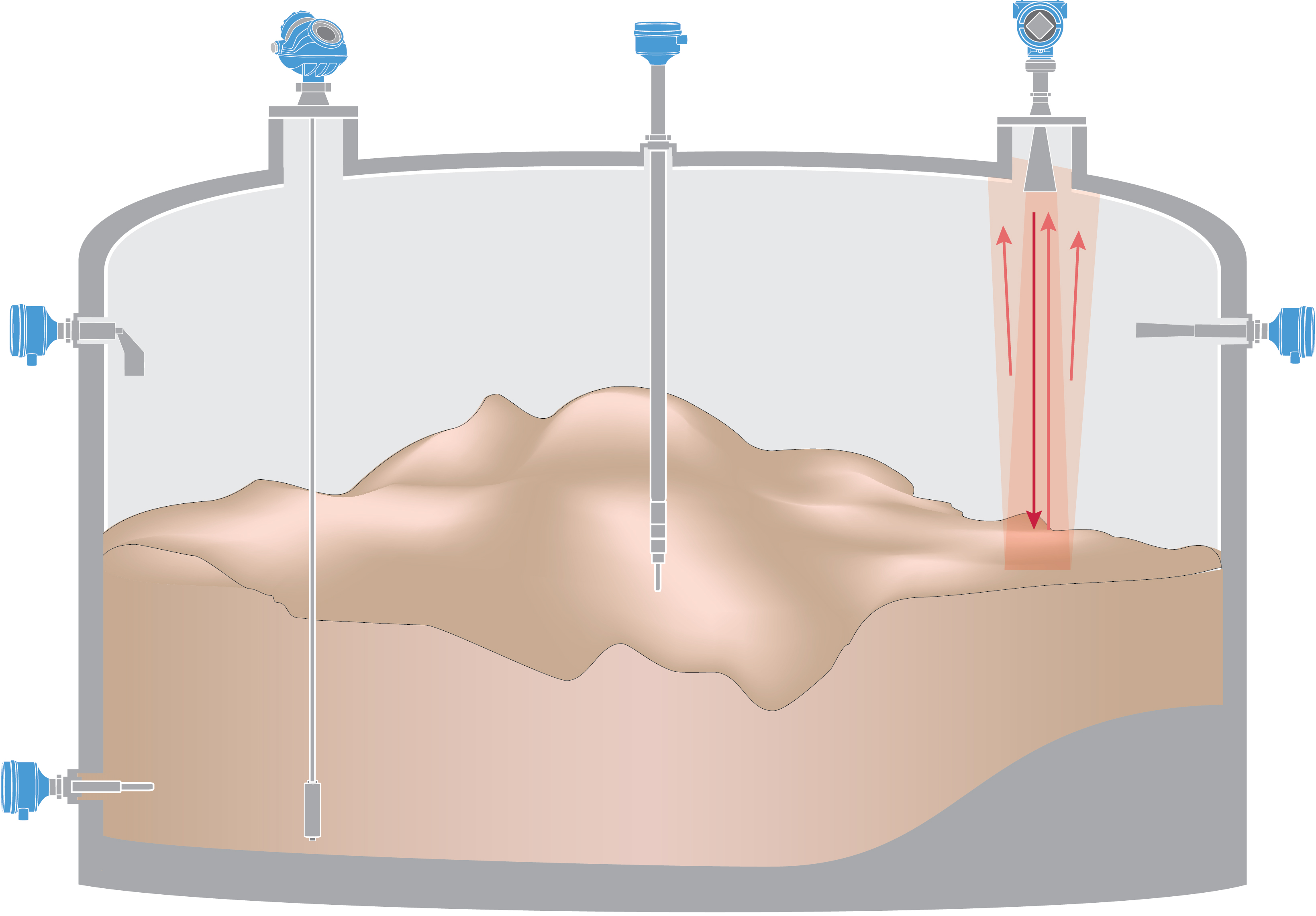 Dans les applications de mesure des solides, tous les instruments de mesure de niveau sont concernés par les surfaces irrégulières. Les caractéristiques des matériaux et la taille du silo auront une incidence sur la structure des surfaces, ce qui déterminera le lieu d’installation privilégié et le choix de la technologie.