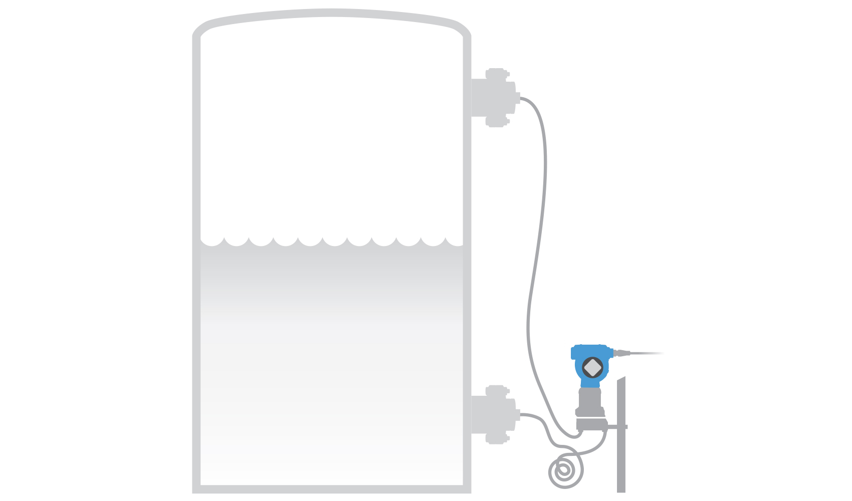 Le système de mesure de niveau Tuned-System™ Rosemount utilise des capillaires de deux longueurs différentes reliées à un transmetteur permettant au système d’améliorer le temps de réponse et de compenser les erreurs dues à la température. Généralement, un côté du système est monté directement sur la cuve et l’autre est monté à distance par un tube capillaire. Ce système permet d’économiser du temps et de l’argent lors de l’installation en éliminant les composants de montage supplémentaires du transmetteur et il constitue une solution idéale pour les applications à courte portée et à haute pression.