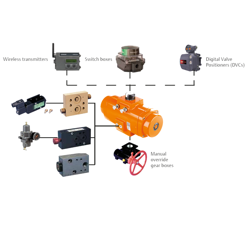 Les actionneurs pneumatiques à pignon et crémaillère Bettis délivrent un couple stable pour automatiser les vannes dans un large éventail d’applications industrielles générales ou sévère de toute taille et de toute température.
