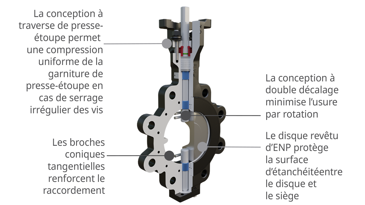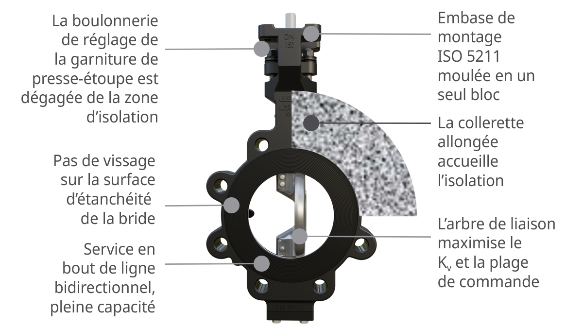 Un patin de montage moulé conformément à la norme ISO 5211 permet le montage direct des actionneurs, éliminant ainsi la nécessité de recourir à des supports coûteux.