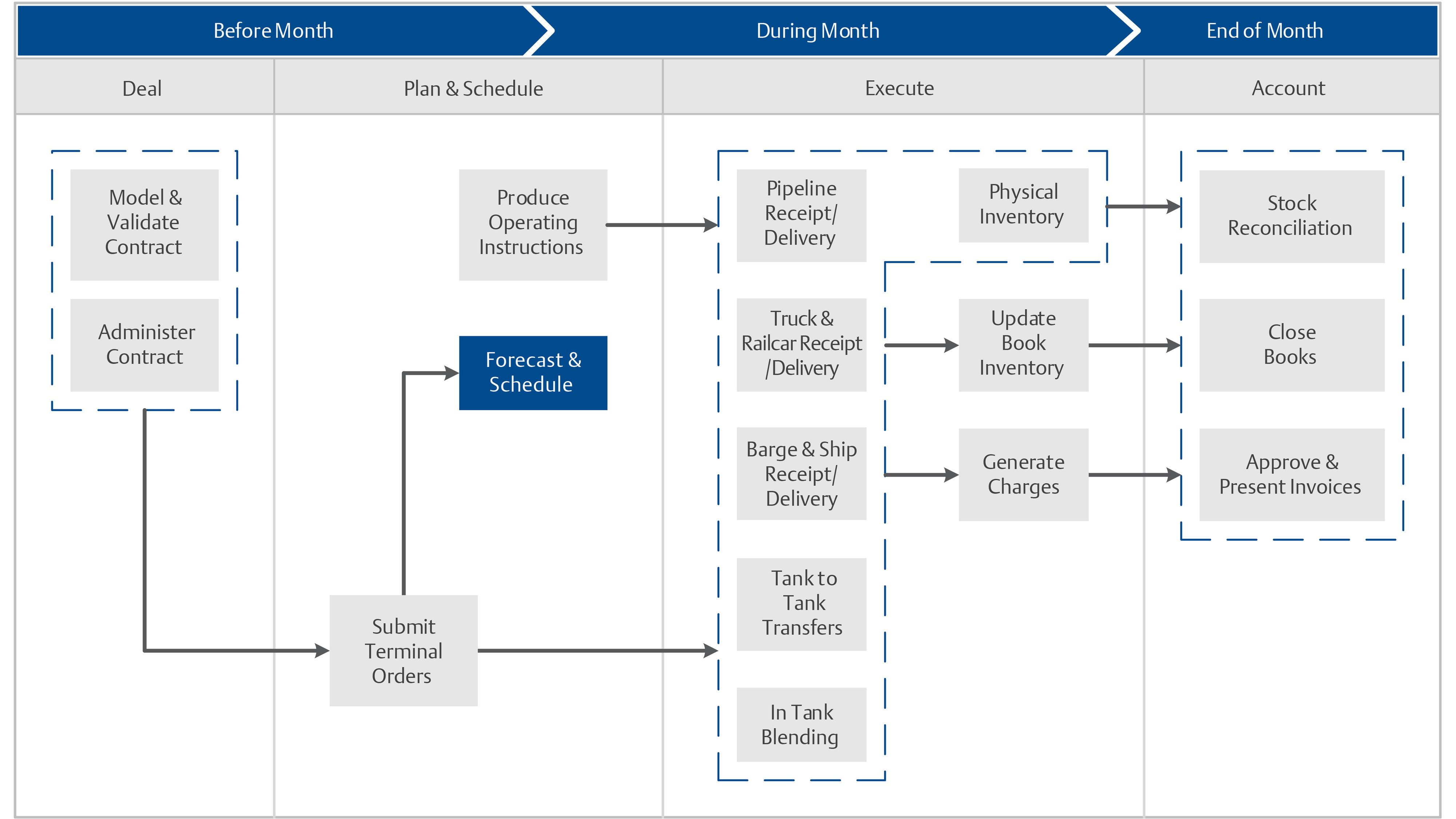 Effective order processing requires good planning and scheduling to maximize asset utilization and customer requests. Failure in either aspect can result in costly delays, customer service issues and even penalties. Emerson provides planning and scheduling solutions to identify equipment availability, conflicts and potential solutions, minimizing the impacts to customer requests and helping maintain an efficient flow of products through the terminal.