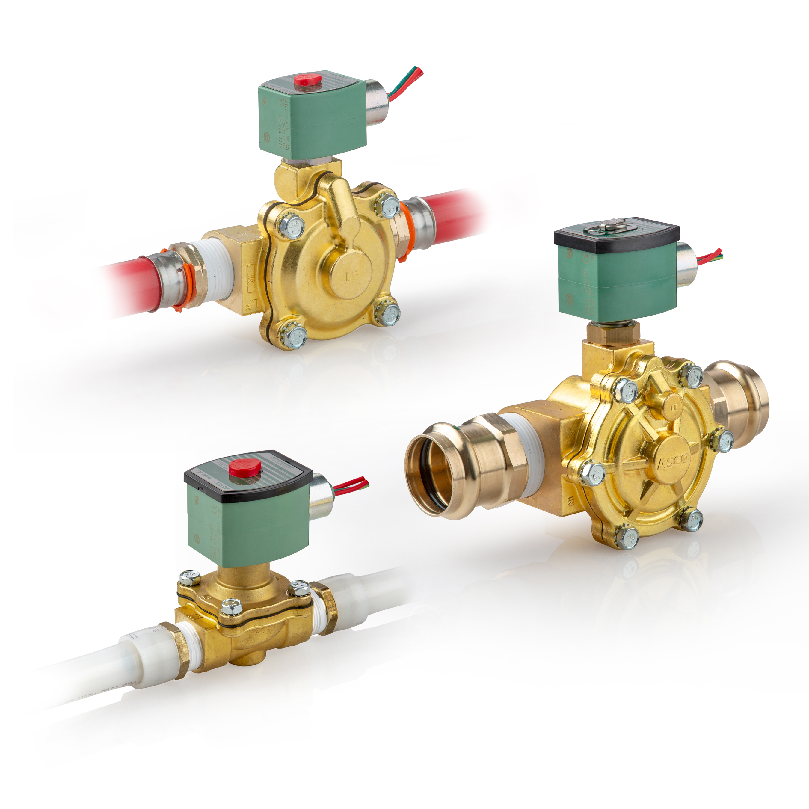 Les électrovannes en matériaux composites ou en plastique présentent l’avantage de ne contenir absolument aucun plomb. Elles sont également disponibles dans de nombreux diamètres de raccordement et configurations, y compris les plus courants dans les systèmes d’eau potable. Ces électrovannes sont peut-être aujourd’hui le produit le plus populaire du secteur pour l’acheminement résidentiel/commercial de l’eau potable. Emerson propose une large gamme d’électrovannes ASCO certifiées NSF pour répondre aux divers besoins de l’industrie.