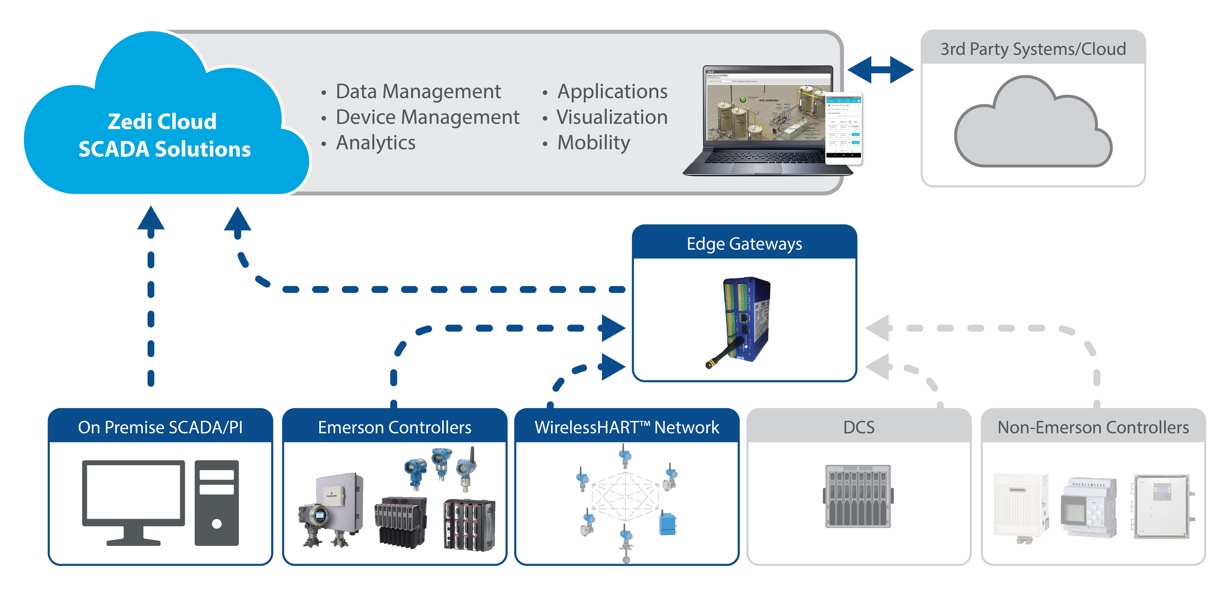 Les systèmes SCADA assurent une surveillance des systèmes évolutifs, des sites uniques aux milliers de points de surveillance, avec une intégration aisée des équipements de terrain distants. Emerson propose des solutions SCADA sur site et sur le cloud pour répondre à de nombreuses exigences opérationnelles.