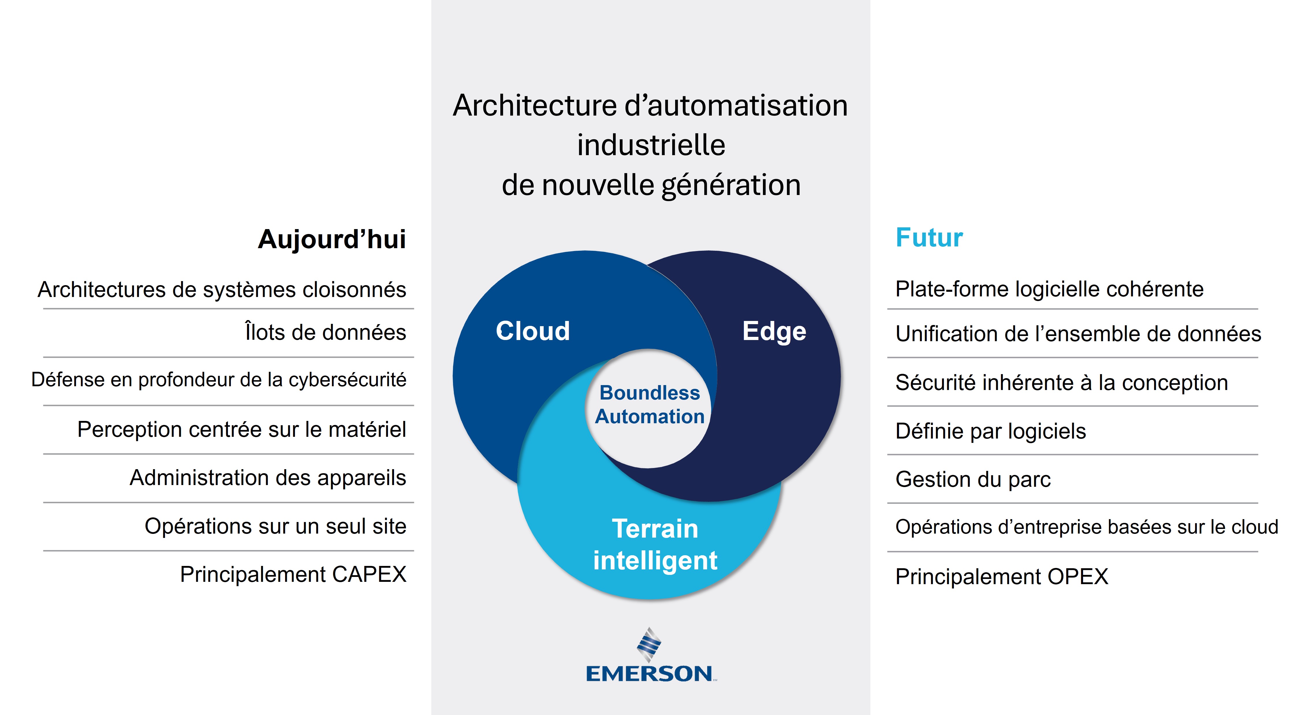 L’architecture Boundless Automation d’Emerson fera tomber les obstacles et les cloisonnements des données sur le terrain intelligent, en informatique de périphérie et cloud. L’intégration de ces systèmes disparates dans un ensemble unifié de données apportera de nouvelles perspectives et aidera les entreprises à optimiser leurs opérations en termes de production, de fiabilité, de sécurité, de développement durable et de main-d’œuvre.