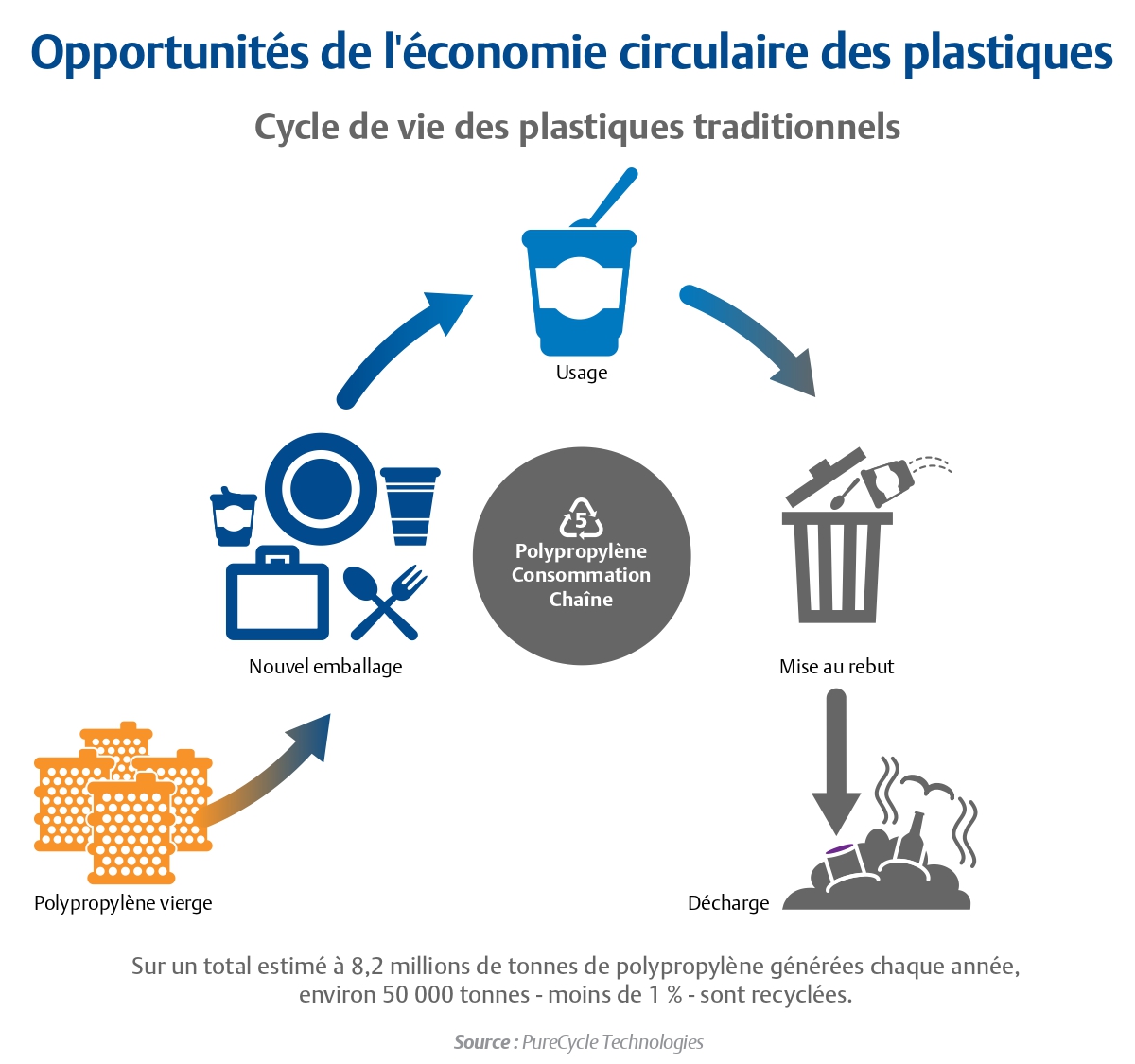 Le recyclage des plastiques a commencé dans les années 1970, 20 ans après l’acceptation de l’omniprésence de ce matériau dans la vie quotidienne. Le recyclage d’hier ne pouvait cependant pas suivre le rythme de notre consommation de plastiques à l’époque, et il ne peut toujours pas suivre le rythme de l’évolution rapide du monde d’aujourd’hui.