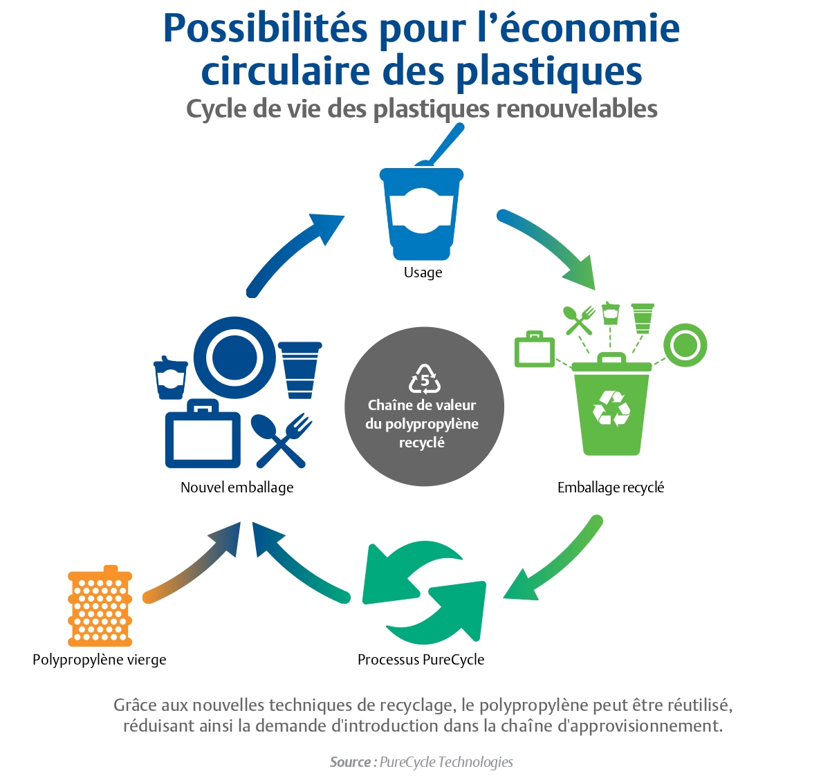 La réduction de la pollution produite par les plastiques à l’échelle mondiale nécessitera une transition accélérée vers de nouveaux procédés, des innovations supplémentaires et la capacité de soutenir des objectifs ambitieux de développement durable. Les technologies d’automatisation numérique avancées, comme les solutions proposées par Emerson, associées à une ingénierie de projet innovante et collaborative, peuvent aider des entreprises comme PureCycle et ReNew ELP à créer des solutions à long terme qui sont sûres, fiables et productives, tout en garantissant un résultat positif pour l’environnement et le bilan financier. La combinaison d’un partenaire numérique de confiance et d’une technologie innovante permettra de prendre en charge chaque année une énorme part des 170 milliards de livres de plastique polypropylène produites et de nous mettre sur la voie d’un avenir meilleur.