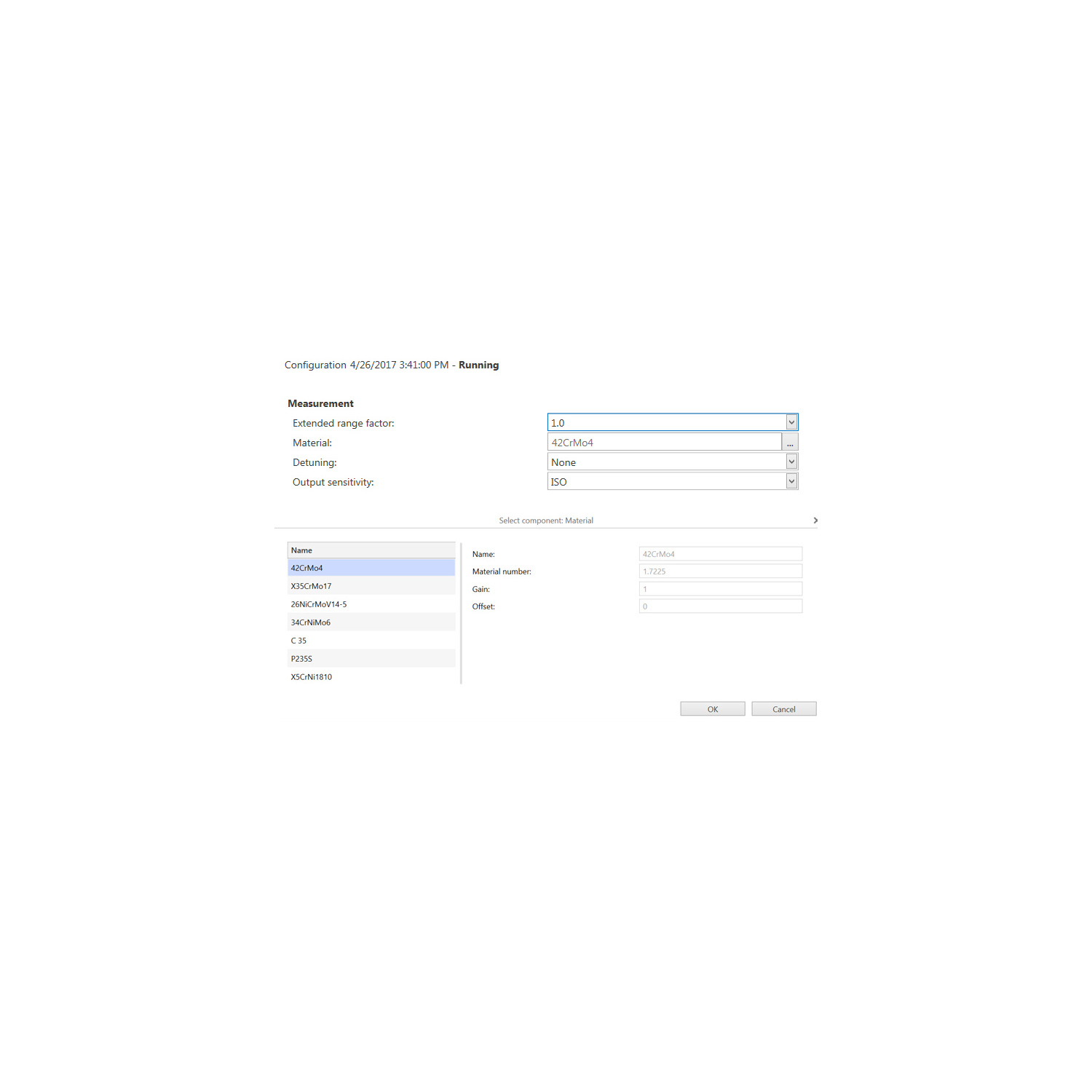 Next select the measurement information, including extended range factor, material, defining, and sensitivity.