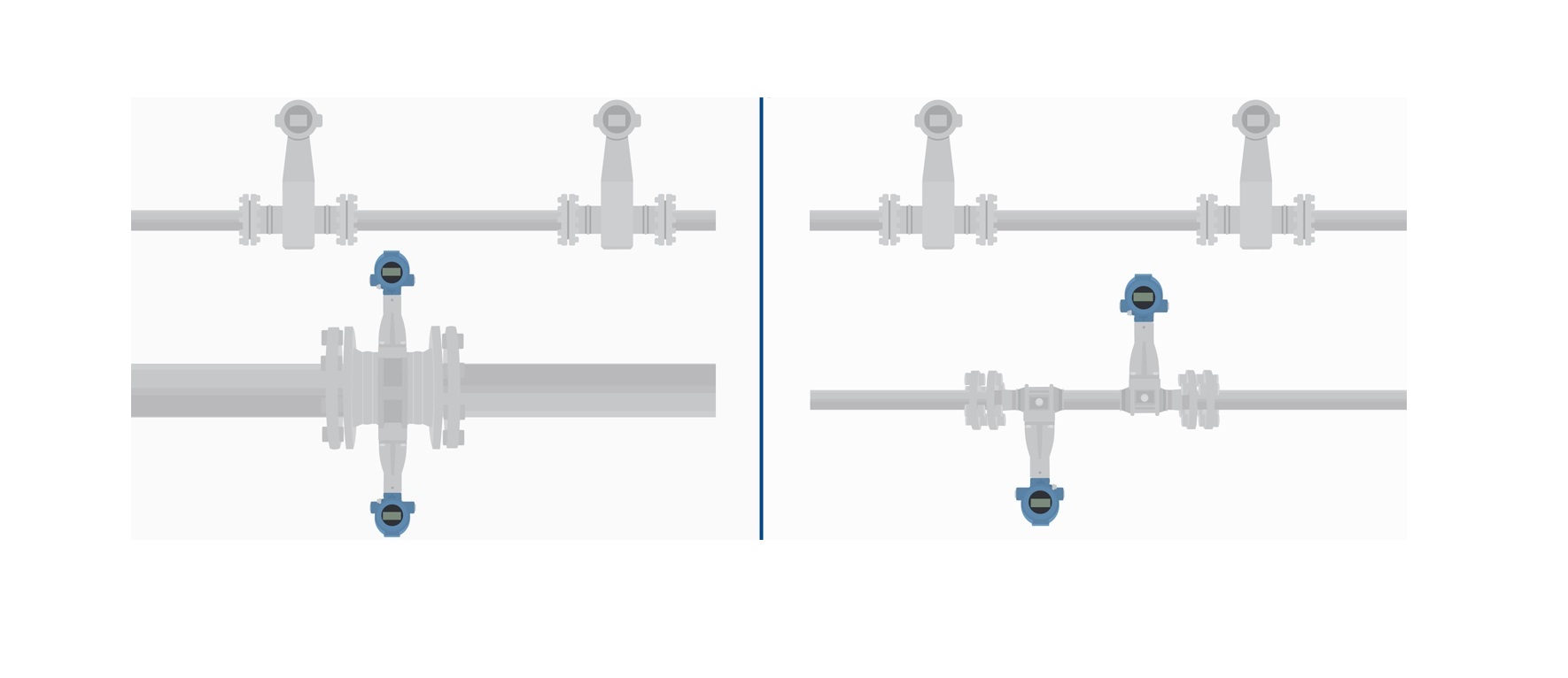 Il design compatto del misuratore Quad Vortex riduce i costi di installazione dei tipici sistemi di misura ridondati. Offre misura di portata precisa e ridondante utilizzando barre doppie spaziate proprietarie che si rinforzano a vicenda. Ciò elimina la necessità di: