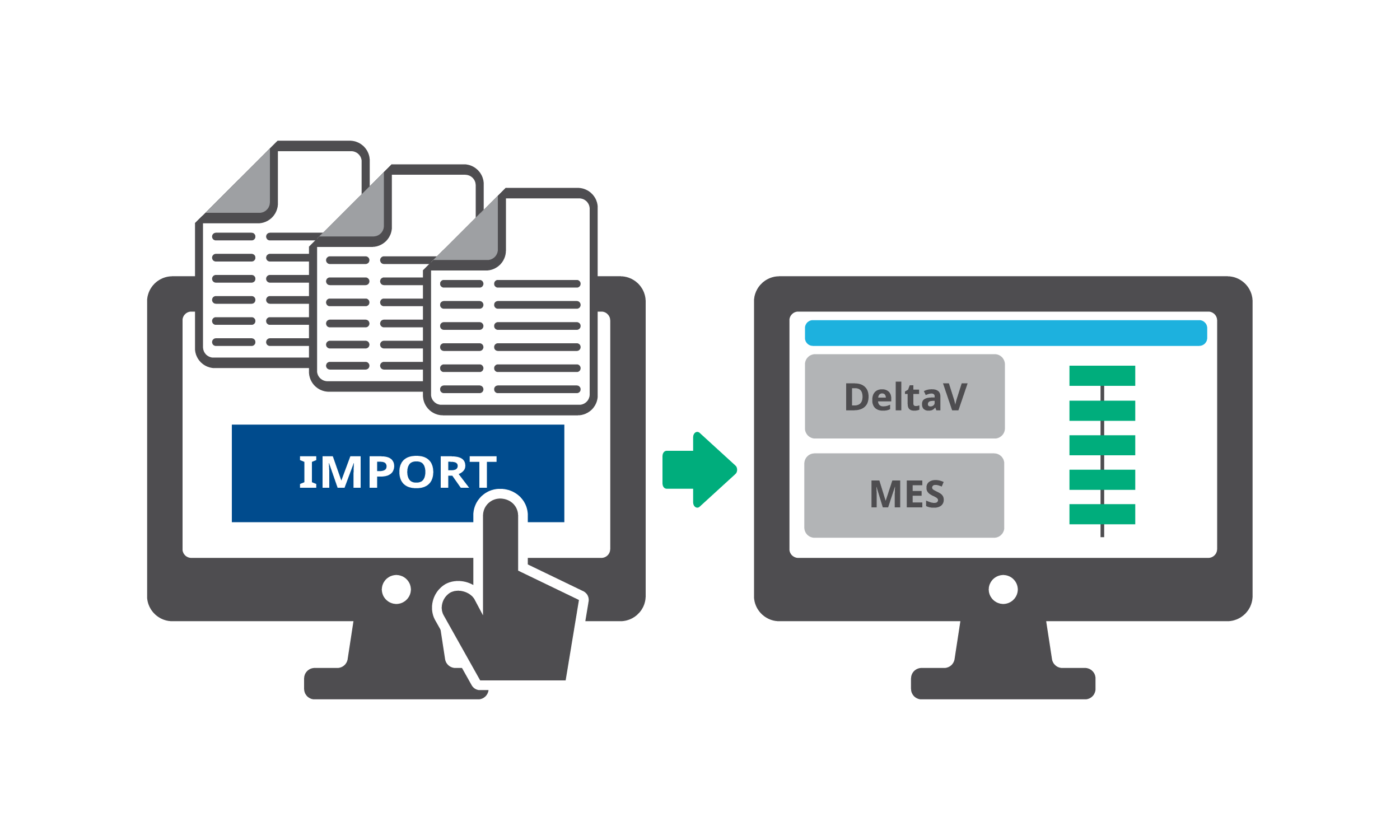 Tradizionalmente, la conversione dei record dei batch cartacei in ricette MES digitali è un processo complesso e dispendioso in termini di tempo che richiede più workshop, configurazioni, revisioni, test e competenze di codifica. Queste fasi spesso richiedono mesi e una stretta collaborazione tra i team IT e tecnologici operativi (ad esempio, produzione, qualità, processo, ecc.). Lo strumento di importazione di ricette DeltaV MES Recipe Importer Tool elimina questi colli di bottiglia, riducendo significativamente le tempistiche di creazione delle ricette.