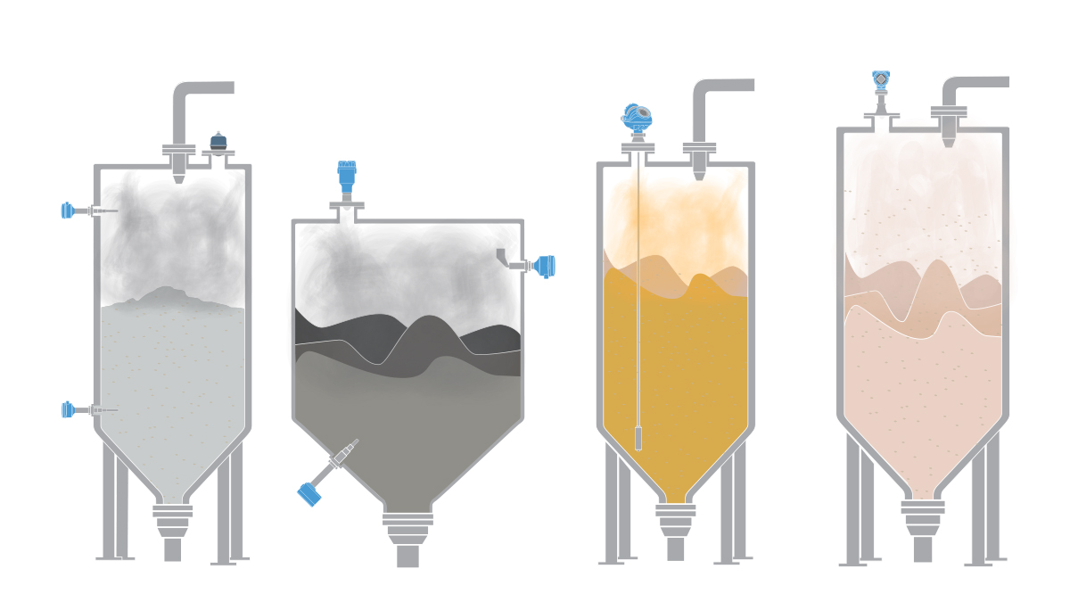Gli interruttori comprendono diverse tecnologie adatte al rilevamento completo, a richiesta o a vuoto per tutti i tipi di rinfuse in tutti i tipi di serbatoio.