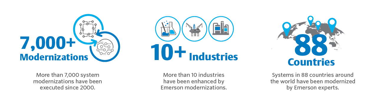 Emerson has extensive control system modernisation experience, supporting over 7,000 migrations to DeltaV solutions from all types of legacy systems. Established processes and people, together with artificial intelligence and machine learning tools are available to assess the state of your automation, quantify operational benefits, then plan and execute your project. With over 5,000 project resources worldwide, your control system modernisation can be executed flawlessly, on schedule, with minimum production impact.