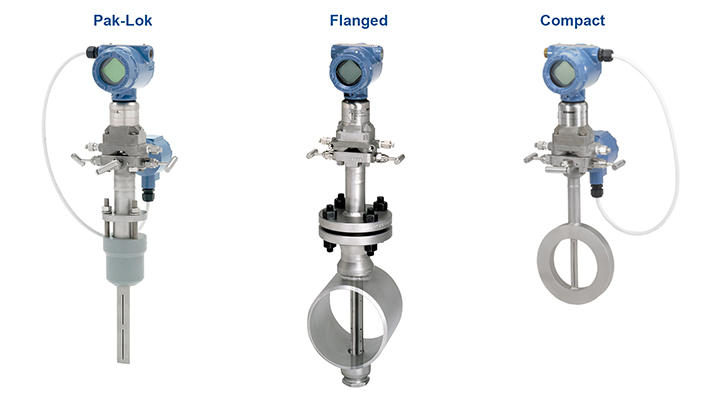 A versatile solution, Annubar Averaging Pitot Tubes offer several mounting options to meet a wide range of process demands. The flanged assembly fulfills structural requirements of high-pressure applications and provides traditional mounting mechanisms for retrofitting. The Pak-Lok option utilizes the compression design to firmly secure the sensor and the Compact design easily installs between raised-face flanges.