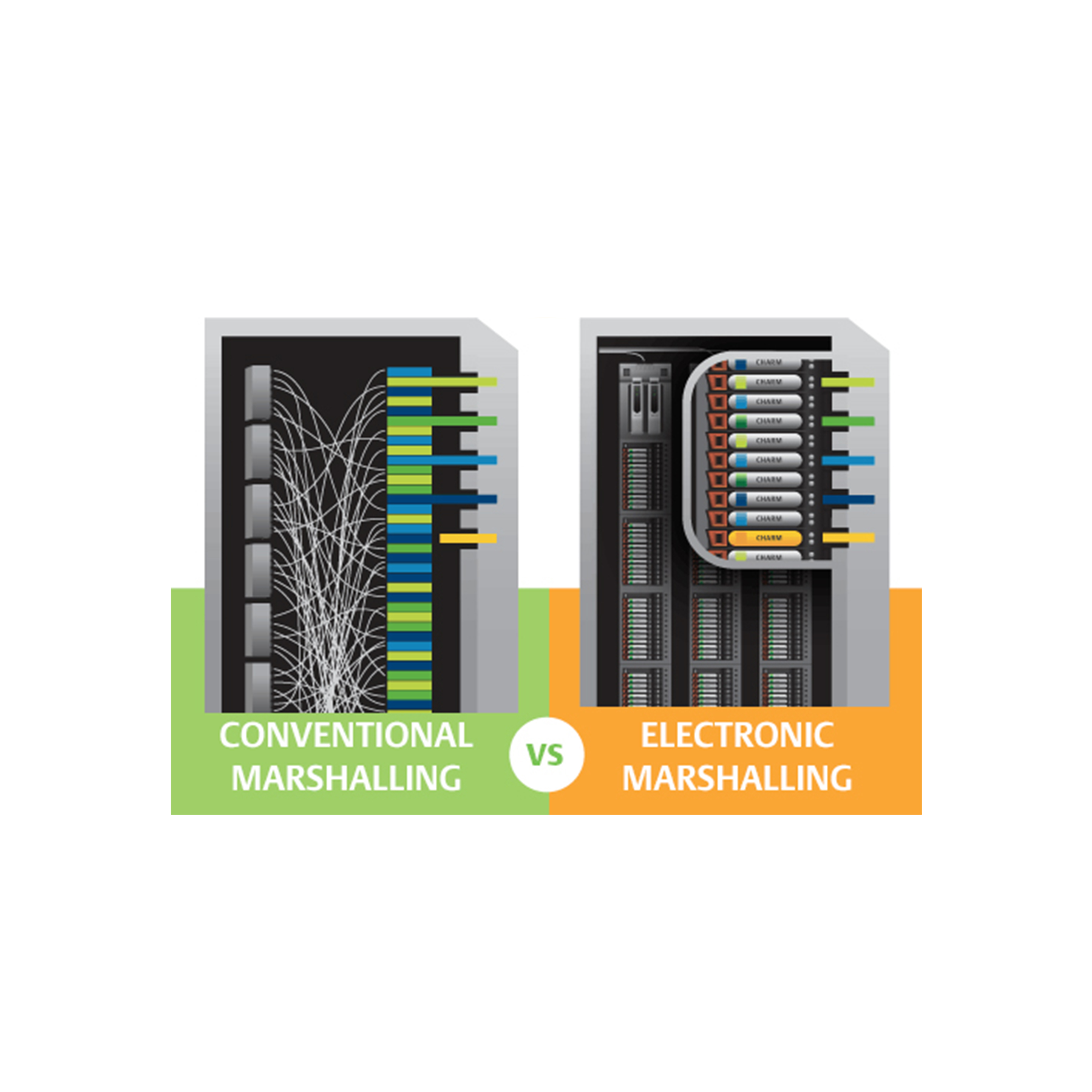 A tecnologia CHARM traz uma flexibilidade que permite que o cabeamento de campo de qualquer tipo de sinal seja terminado em qualquer lugar. Um LS-CHARM é apenas um componente de canal único com um conversor A/D e caracterizador de sinal inserido no bloco de terminais onde os fios de campo são colocados. Simplesmente clique no LS-CHARM apropriado no local e conecte-se a um sinal específico. Não há necessidade de cabeamento de grupo por tipo de sinal. Caso um problema de campo danifique o LS-CHARM, o impacto é limitado a um LS-CHARM em particular.