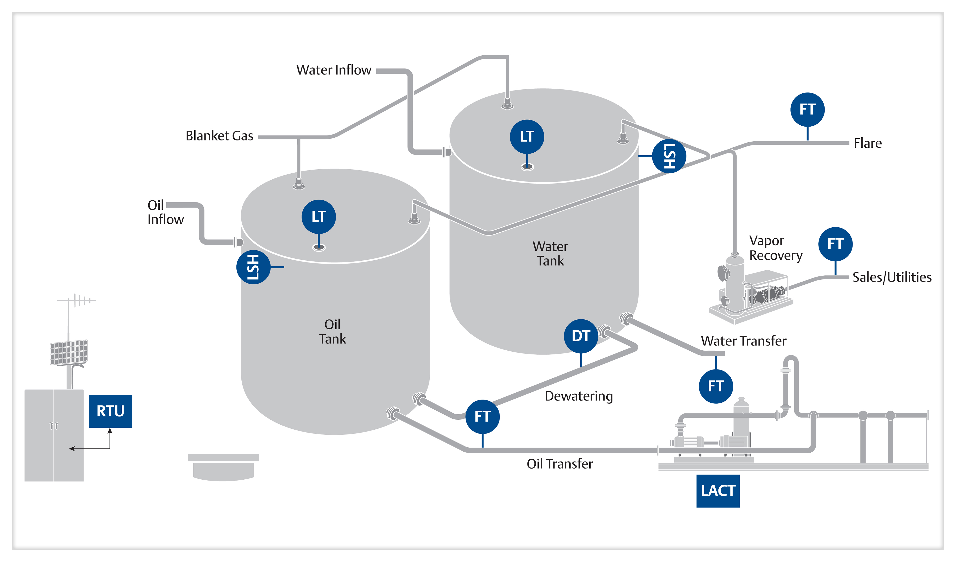A gestão do inventário de plataformas de poços, a alocação e a transferência de custódia são fundamentais para reduzir a incerteza da gestão da produção e o risco fiscal. O software de gerenciamento de tanques, os sistemas automatizados de transferência de custódia e os controladores de operação remota fornecem os meios para automatizar suas operações. Isso pode minimizar a falta de incerteza total e reduzir os custos operacionais. A medição confiável de vazão e de nível permite verificações oportunas de transporte de pay / check.
