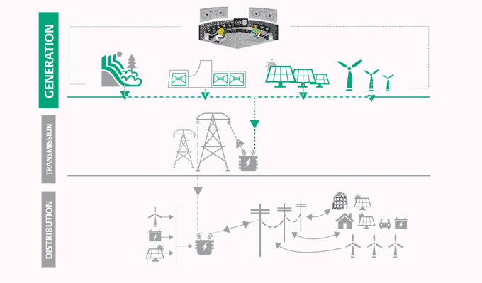 O aumento nos recursos de energia renovável e distribuída está tornando a gestão eficiente de redes mais complexa. As soluções de redes sustentáveis da Emerson transformam energia renovável e distribuída imprevisível em energia previsível e confiável usando previsão de demanda em tempo real, visibilidade da operação e análise em toda a rede de energia. Os recursos de energia renovável e distribuída são perfeitamente incorporados à sua mistura de energia tradicional, maximizando a eficiência da geração à entrega.