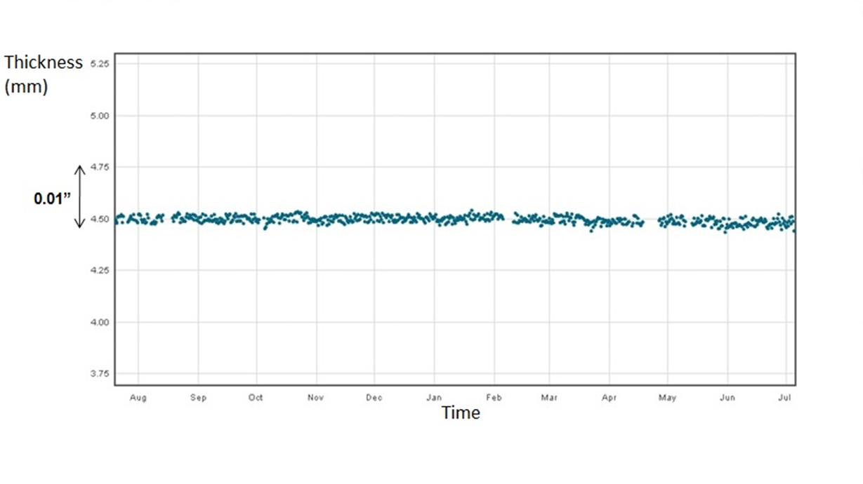 Измерения в одной точке в течение нескольких месяцев подтверждают, что потери металла отсутствуют - нет ни коррозии, ни эрозии.
