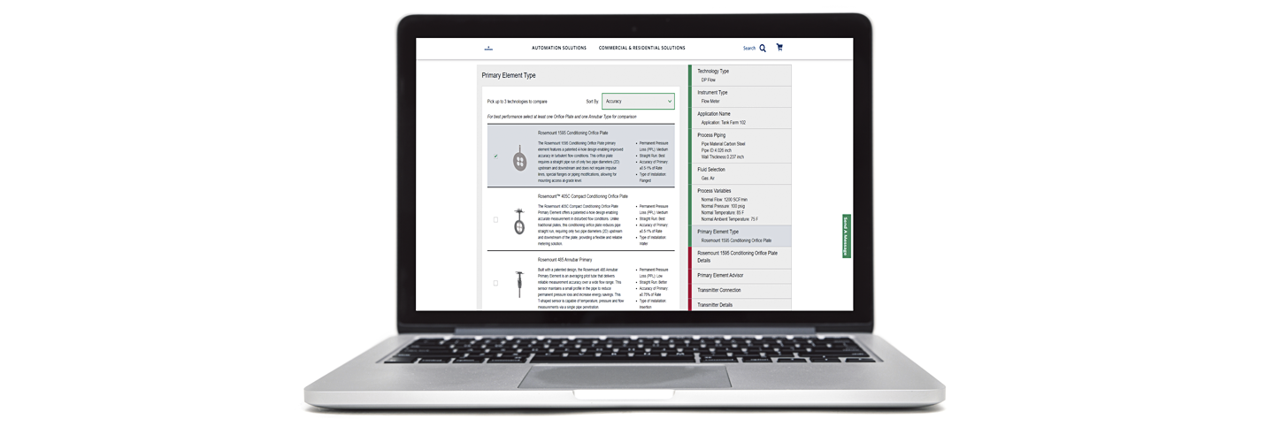 Можно использовать дополнительные возможности для более информированного выбора, включая сравнение нескольких изделий, анализ подробных отчетов о размерах и данные о погрешности расходомеров, а также взаимодействовать с коллегами и специалистами Emerson в совместной цифровой среде.