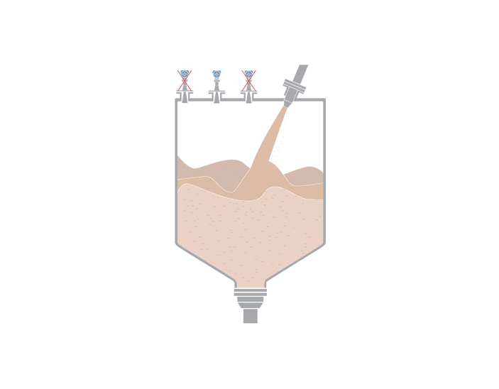 Важно учитывать, где в бункере будет меняться уровень, в зависимости от характеристик материала, размера бункера и места заполнения. Чем ближе измерительное устройство расположено к отверстию для загрузки, тем выше риск влияния на результат измерения.