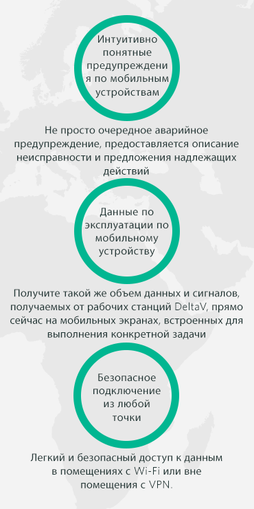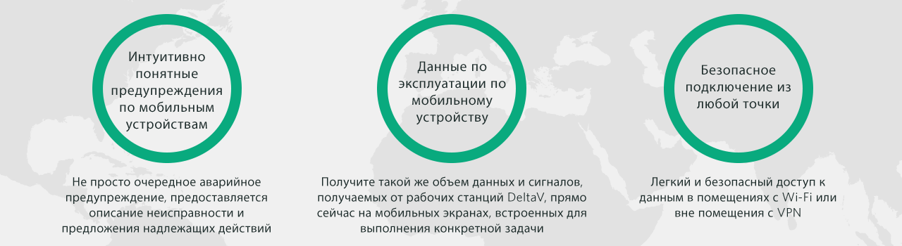 DeltaV™ Mobile изменяет статус-кво, предоставляя совершенно новый опыт эксплуатации и помогая повышать производительность и безопасность эксплуатации, имея в руках доступ к данным о работе предприятия — практически в любом месте.