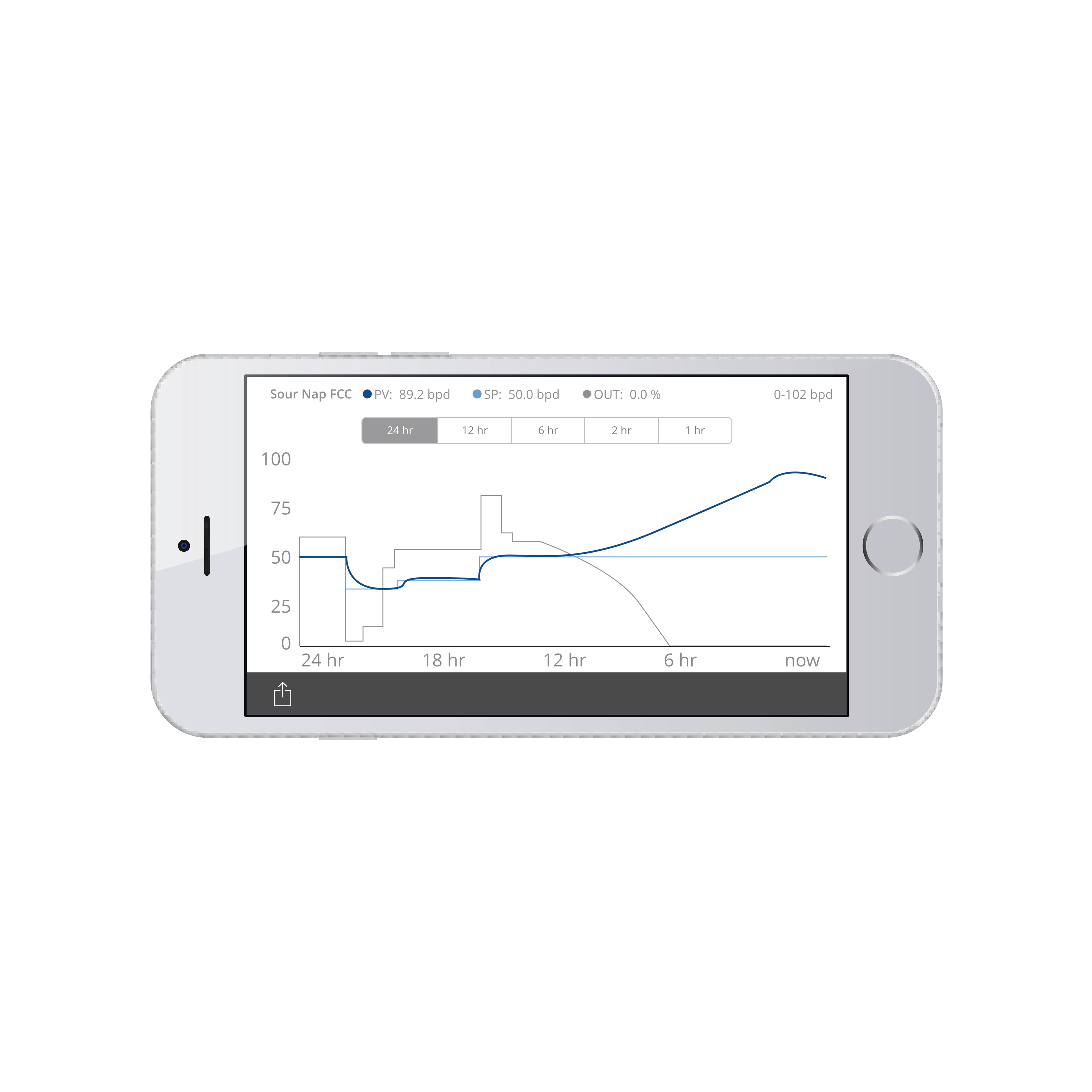 Просматривайте данные процесса, архивные тренды и алармы на своем мобильном устройстве в режиме реального времени - в любом месте.