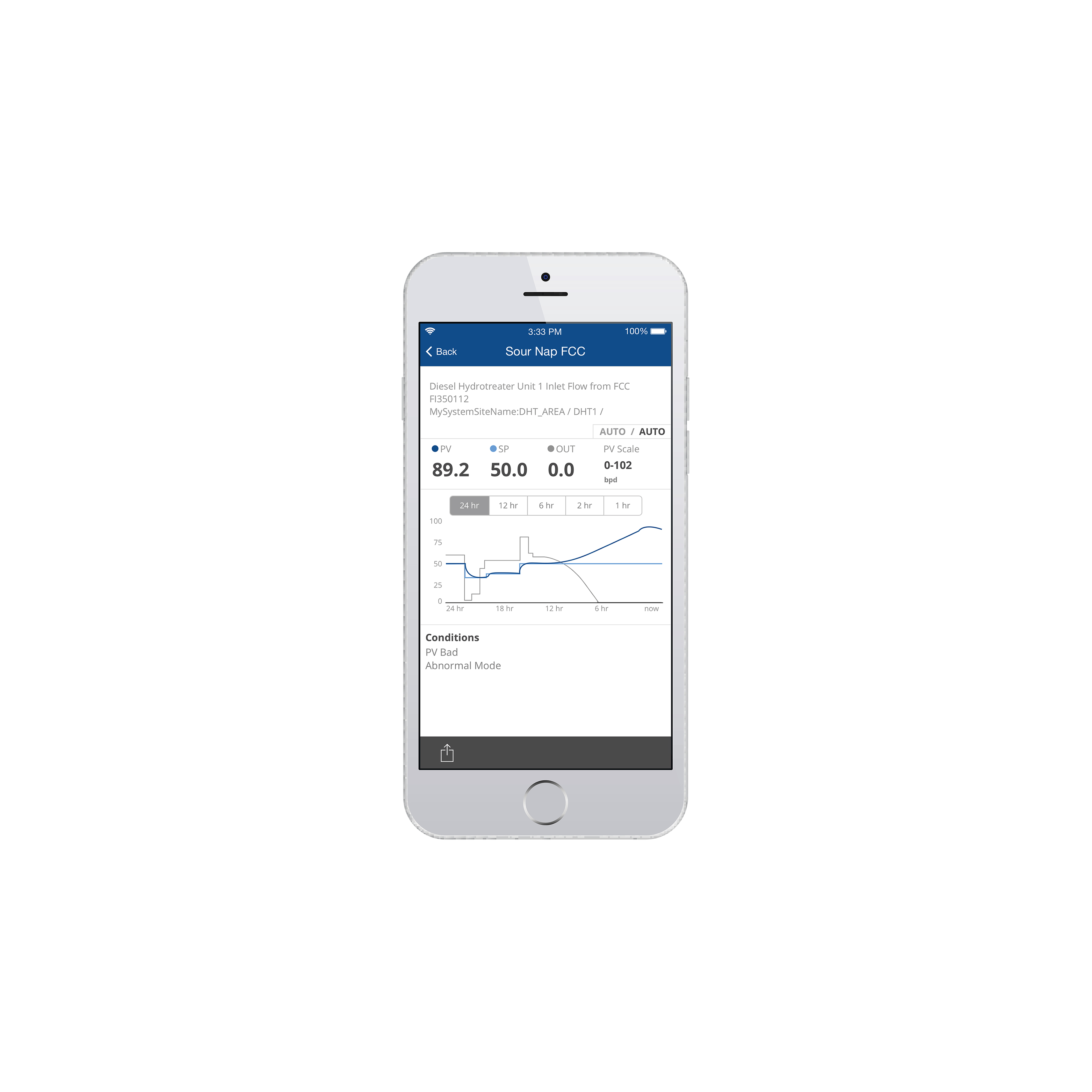 DeltaV distributed control system users can know the health of their operations on-demand, by viewing real-time process values, trends, alarms, historians, and other key data from their mobile devices.
