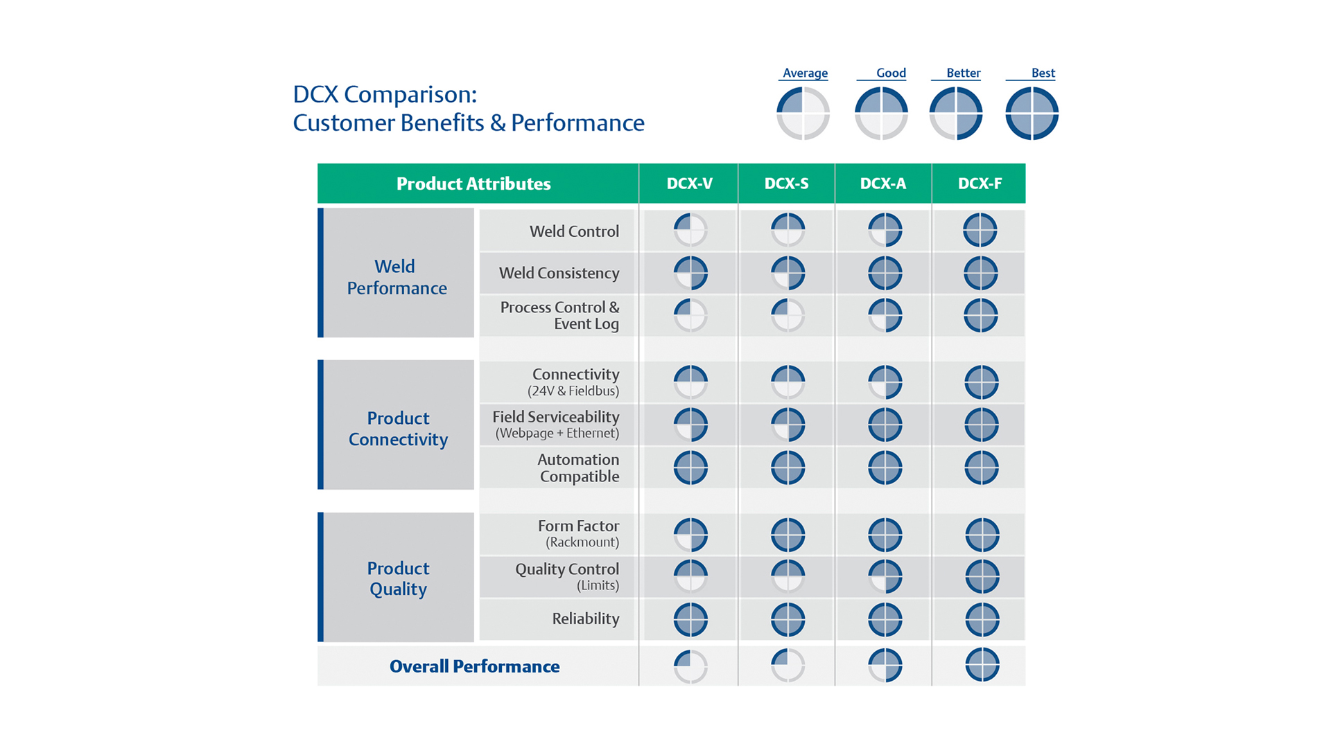 Control weld time and energy, and get feedback on energy usage, frequency and alarm reporting. With the DCX A, you can access all relevant weld results for evaluation and documentation at the end of a cycle. Five different weld modes meet the needs of a variety of applications, with options including time, energy, peak power, ground detect or continuous ultrasonic welding.