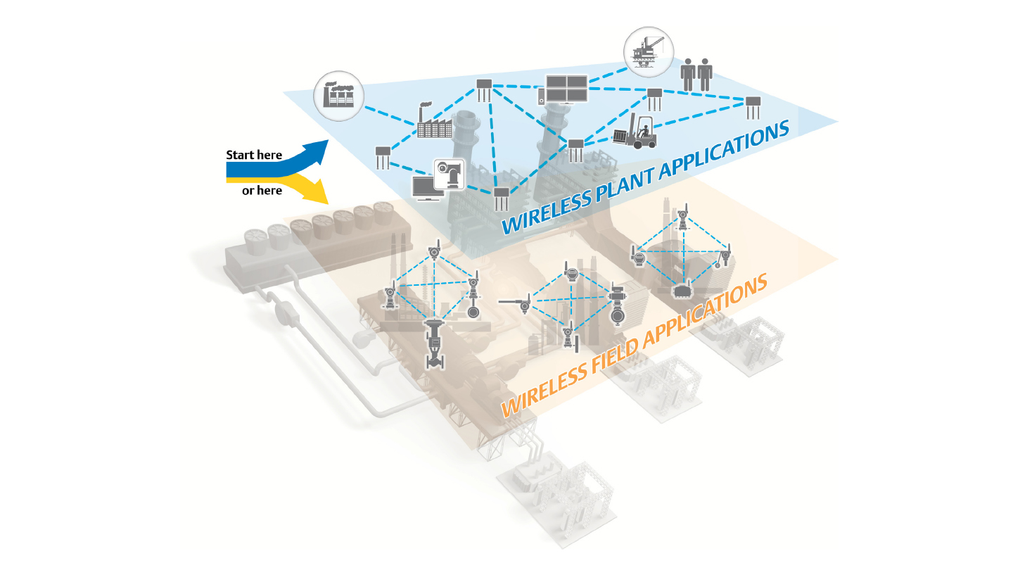 Решение Emerson не является моделью "сверху вниз"или "снизу вверх". Наши шлюзы, устройства, точки доступа и программное обеспечение используют стандарты беспроводной связи, тщательно протестированные для бесперебойной работы с существующей технологией, так что вы можете начинать с задач с высшим приоритетом.