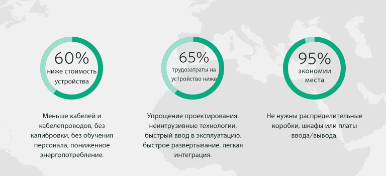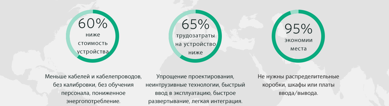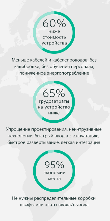 Беспроводные решения отличаются меньшем количеством кабелей, более быстрым вводом в эксплуатацию и отсутствием необходимости калибровки, что позволяет сократить время и расходы на установку более чем на 50%.