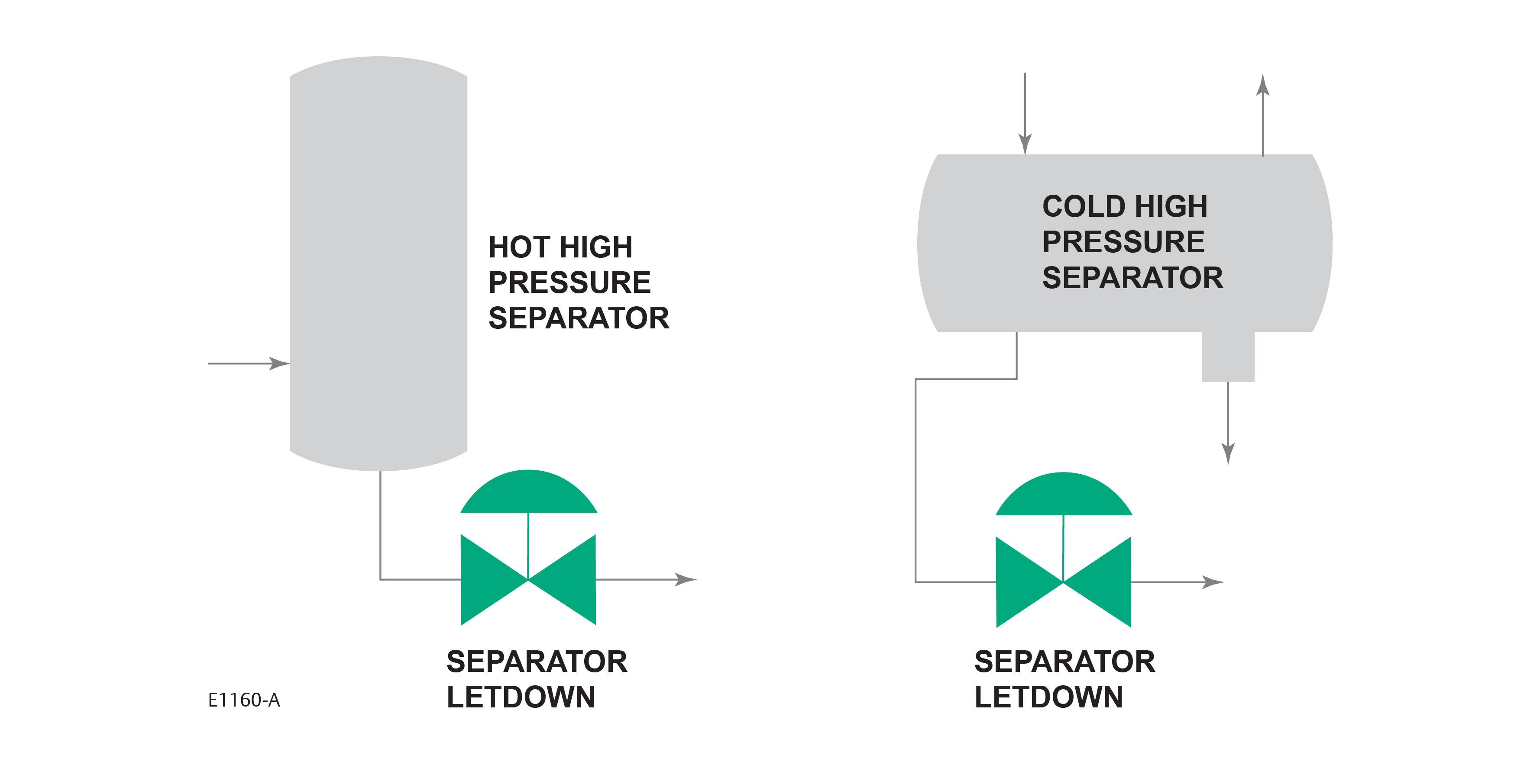 Чтобы преобразовать углеводородные жидкости в топливо для двигателей и основные химические вещества для производства, необходимо выполнить много шагов сепарации. Для выполнения сепарации внутри больших резервуаров используются тепло, давление и катализаторы. Клапаны регулируют потоки и давление в этих резервуарах. Зачастую исходящие потоки переносят перепад давления на клапан, что приводит к дальнейшей сепарации жидкости и газа. Эта сепарация происходит очень быстро и должна регулироваться клапаном. При дросселировании потока особые конструкции клапанов обеспечивают сжимаемый шум, эрозию от жидкости и потенциальную коррозию.