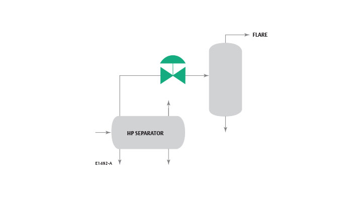 Этот клапан является воздушным клапаном высокого давления для клапана факельного коллектора. Его эксплуатация выполняется в аварийных условиях. Если давление в сепараторе поднимается выше заданного значения, то оно сбрасывается в целях безопасности сепаратора. Эти клапаны подвержены большим перепадам давления, что является причиной высокого уровня аэродинамического шума. Для снижения шума обычно требуются запорные клапаны c тримами аттеньюатора и потенциальной вибрацией.
