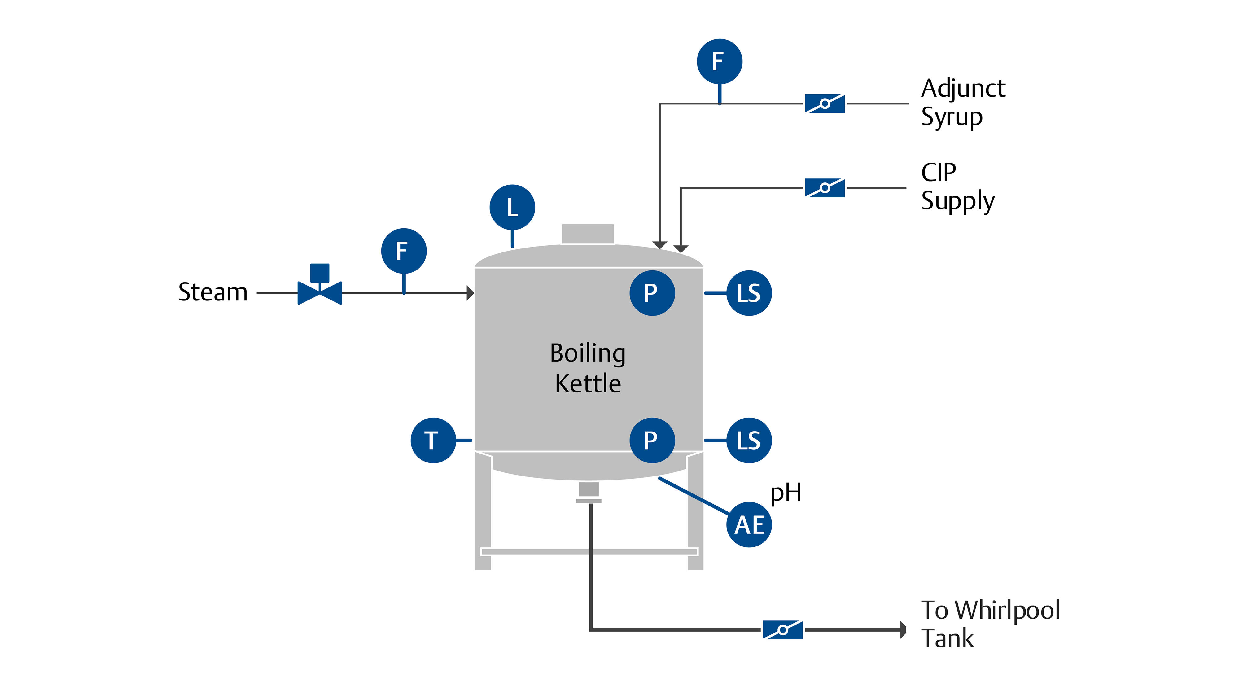 Этап кипячения сусла потребляет больше всего энергии среди всех пивоваренных операций и требует измерения расхода пара для оптимизации энергопотребления при одновременном поддержании надлежащей температуры сусла. Существуют и другие показатели, которые влияют на качество пива, например, pH и содержание сахара в сиропах. Решения Emerson позволяют оптимизировать энергопотребление, одновременно обеспечивая эффективное кипение сусла и полученного из него пива.