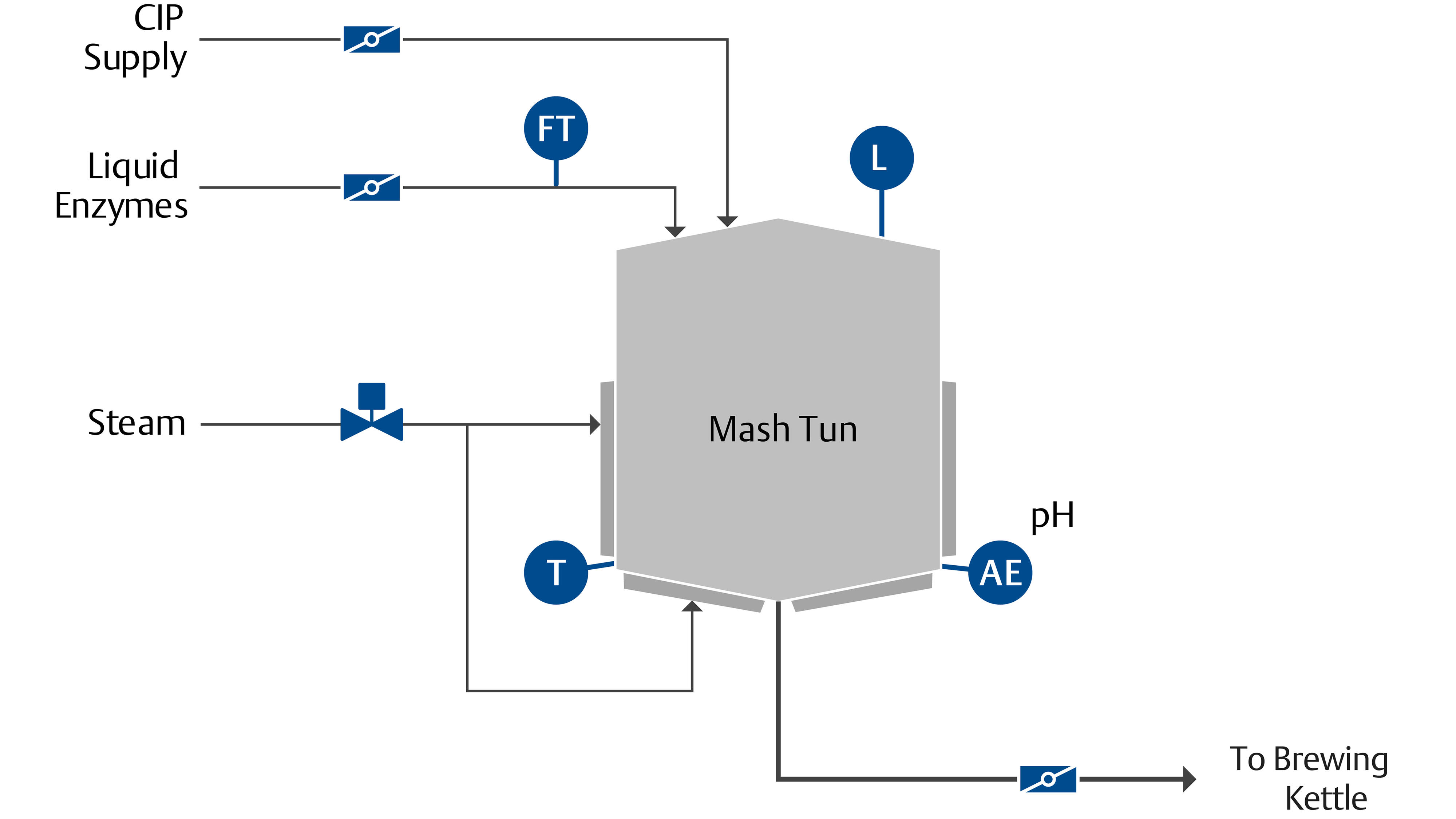 Превращение крахмала в сахар в сусле необходимо для обеспечения адекватного брожения в технологическом процессе. Этого можно добиться путем добавления жидких энзимов и контроля pH и температуры. Emerson предлагает точные расходомеры, датчики pH и температуры, обеспечивающие и оптимальное осахаривание крахмала.